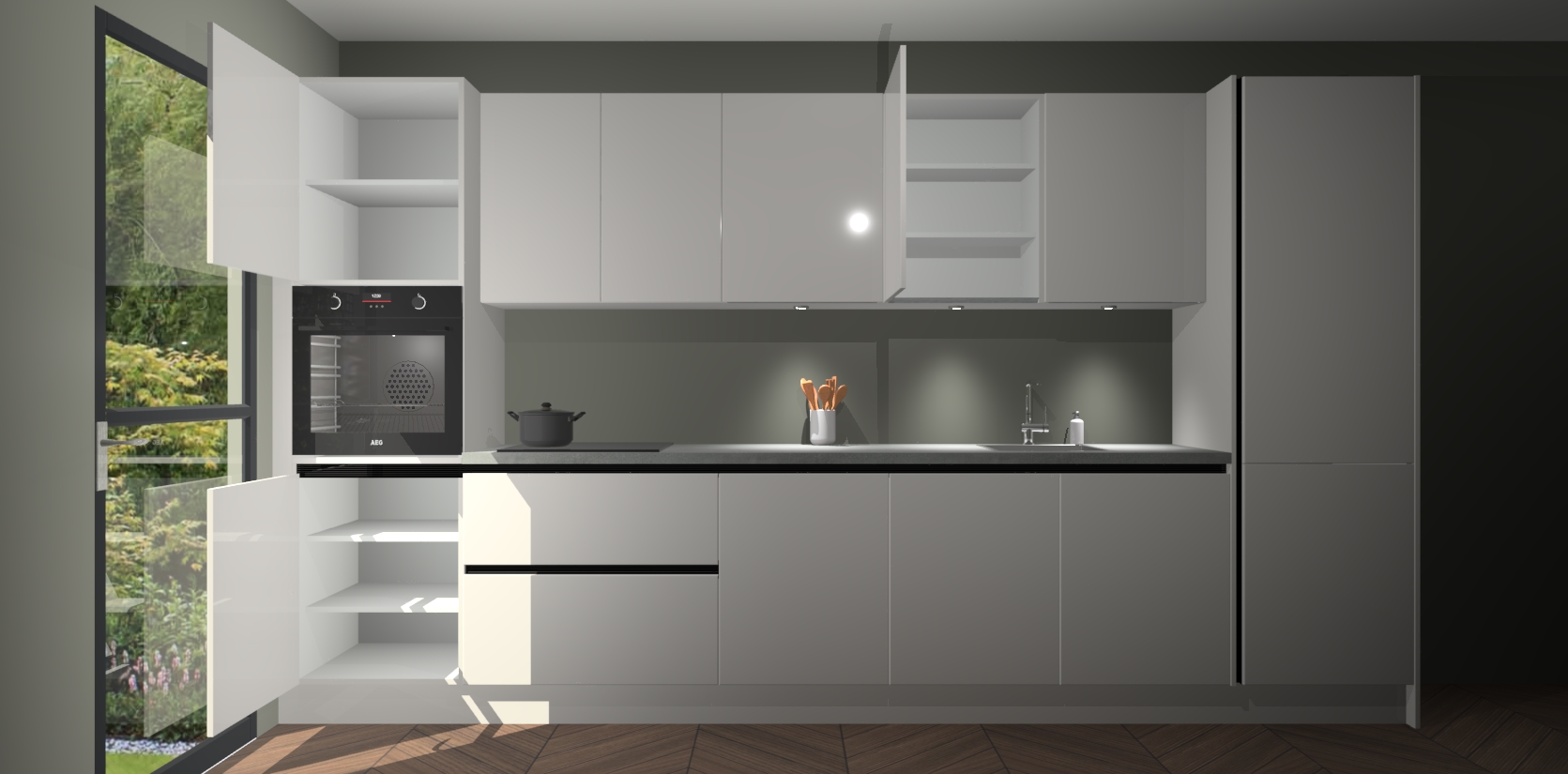 Dit is de perfecte keuken voor wie op zoek is naar een luxueuze stijl zonder zijn portemonnee te legen! Het chique ontwerp van de zijdegrijze hoogglans greeploze keuken Wels voegt dat vleugje verfijning toe aan elk huis. Het gemak van voorgemonteerde kasten bespaart u talloze uren tijd en energie, zodat u veel sneller dan verwacht kunt beginnen te genieten van uw prachtige nieuwe keuken. Bovendien bedraagt de levertijd slechts 7 weken.