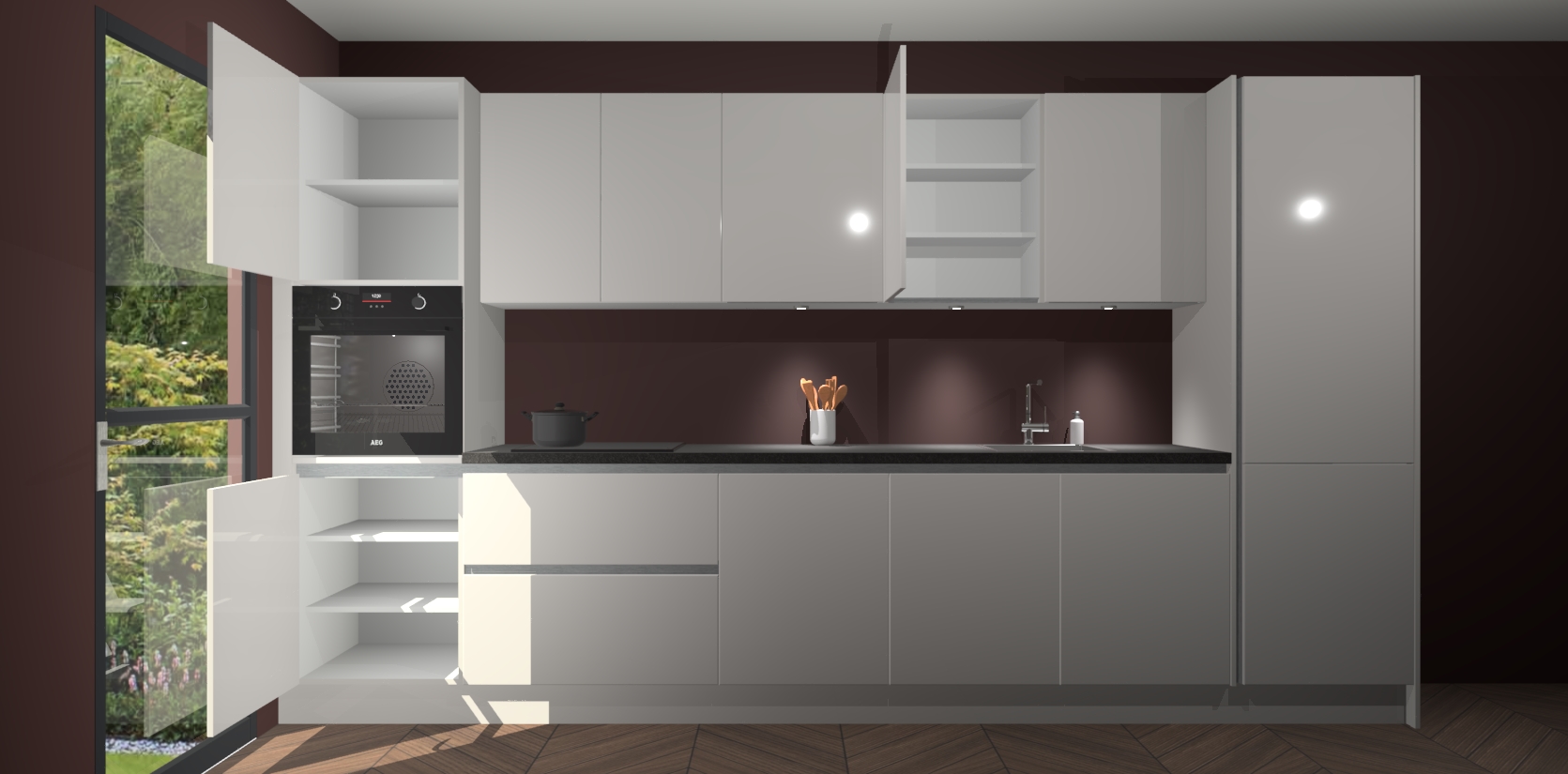 Dit is de perfecte keuken voor wie op zoek is naar een luxueuze stijl zonder zijn portemonnee te legen! Het chique ontwerp van de zijdegrijze hoogglans greeploze keuken Wels voegt dat vleugje verfijning toe aan elk huis. Het gemak van voorgemonteerde kasten bespaart u talloze uren tijd en energie, zodat u veel sneller dan verwacht kunt beginnen te genieten van uw prachtige nieuwe keuken. Bovendien bedraagt de levertijd slechts 7 weken.