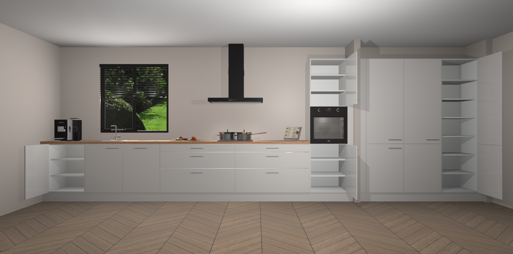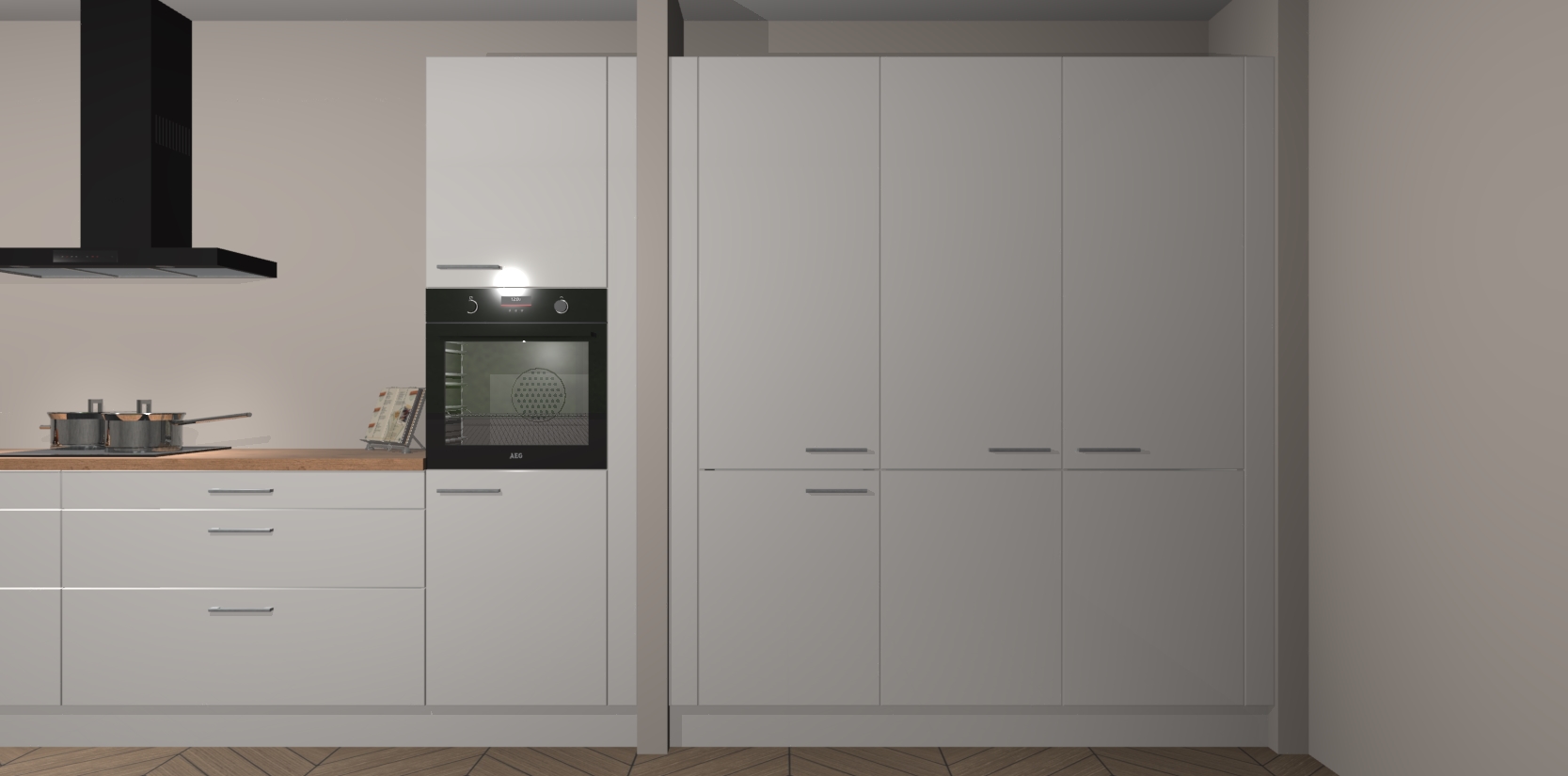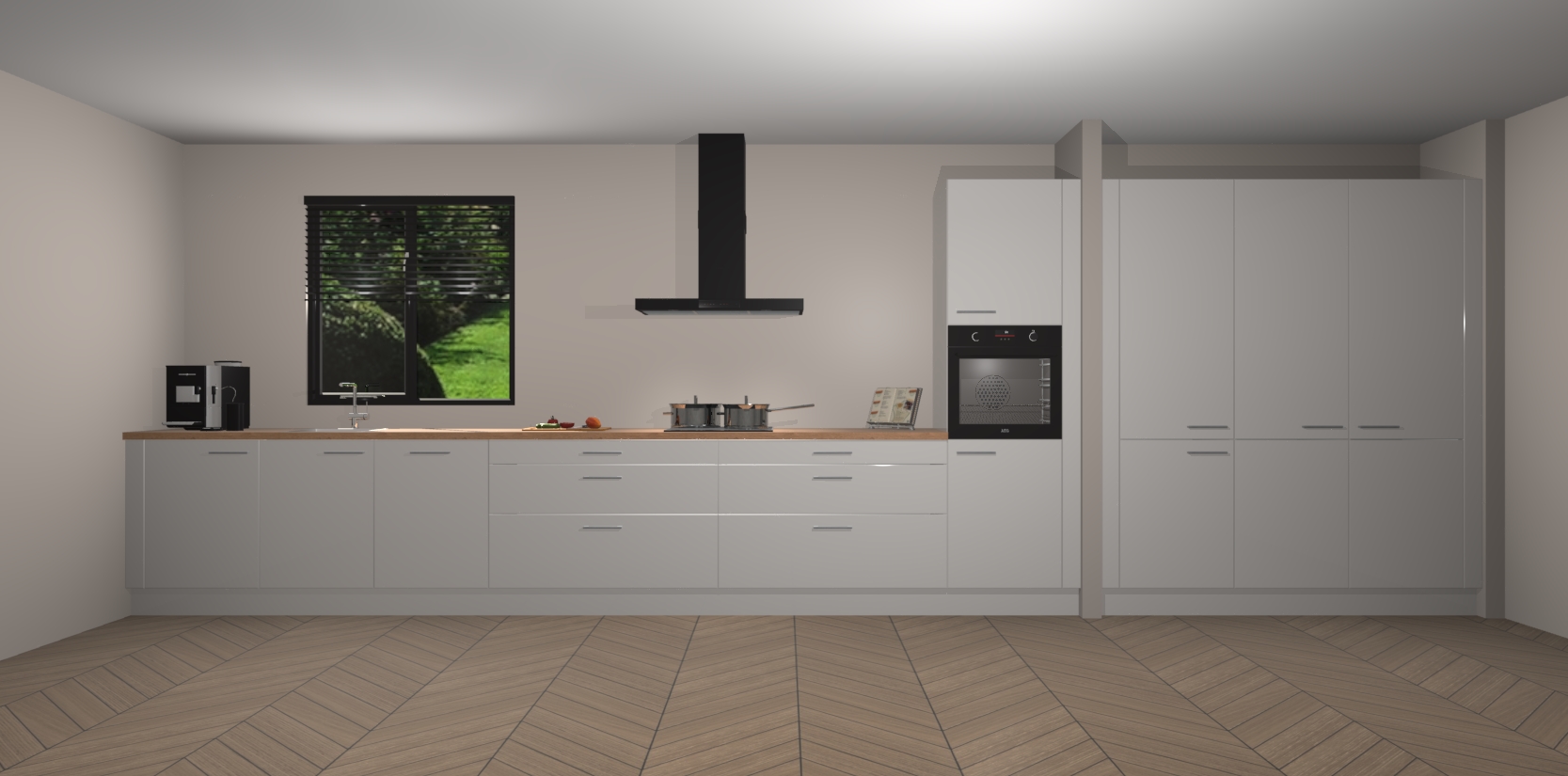 Een stijlvolle en praktische keuken als deze mag gezien worden. Dankzij de prachtige matte afwerking wordt de keuken gemakkelijk het middelpunt van uw huis - hij ziet er geweldig uit onder allerlei lichtomstandigheden, van dag tot nacht!