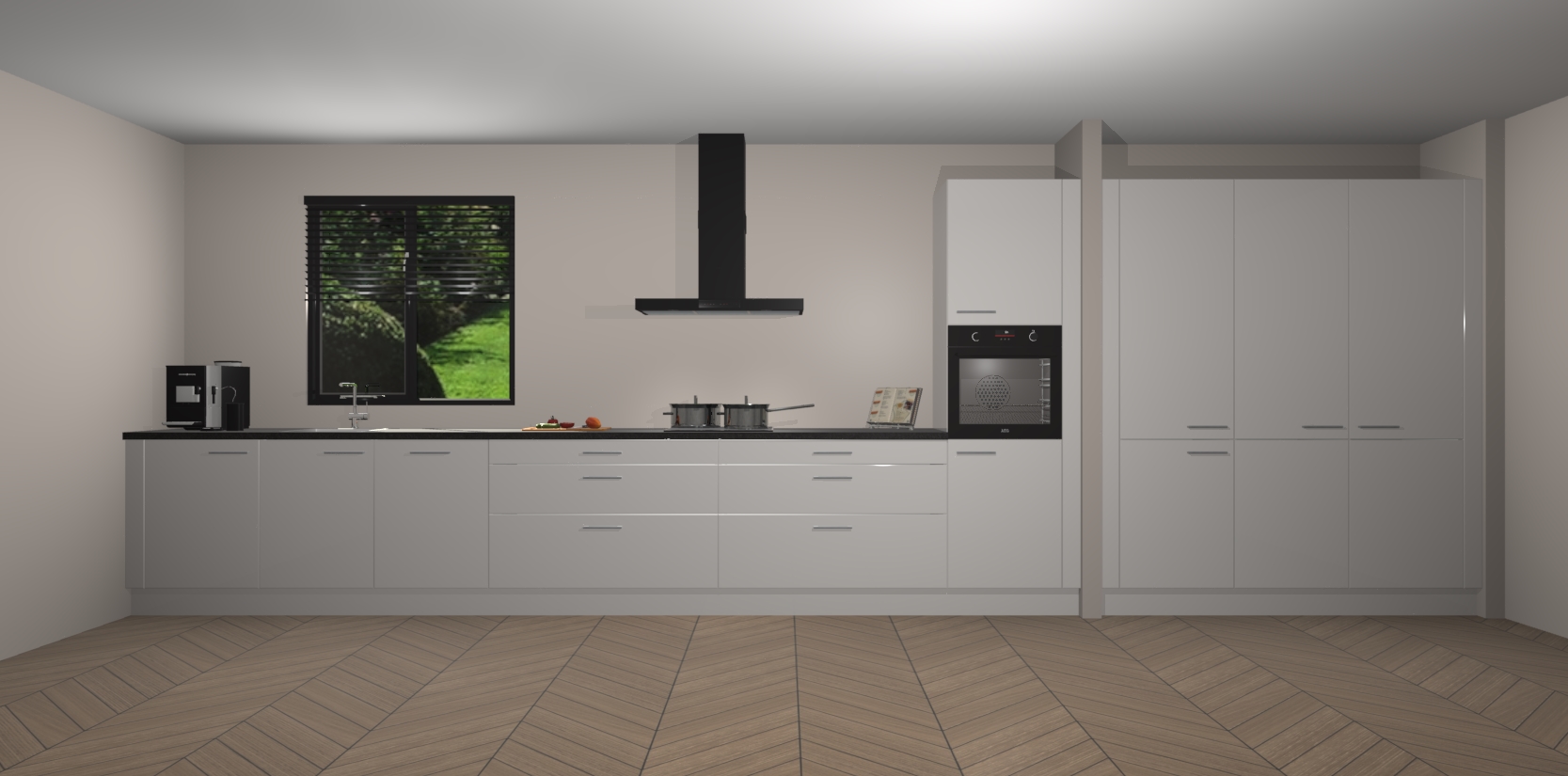 Een stijlvolle en praktische keuken als deze mag gezien worden. Dankzij de prachtige matte afwerking wordt de keuken gemakkelijk het middelpunt van uw huis - hij ziet er geweldig uit onder allerlei lichtomstandigheden, van dag tot nacht!