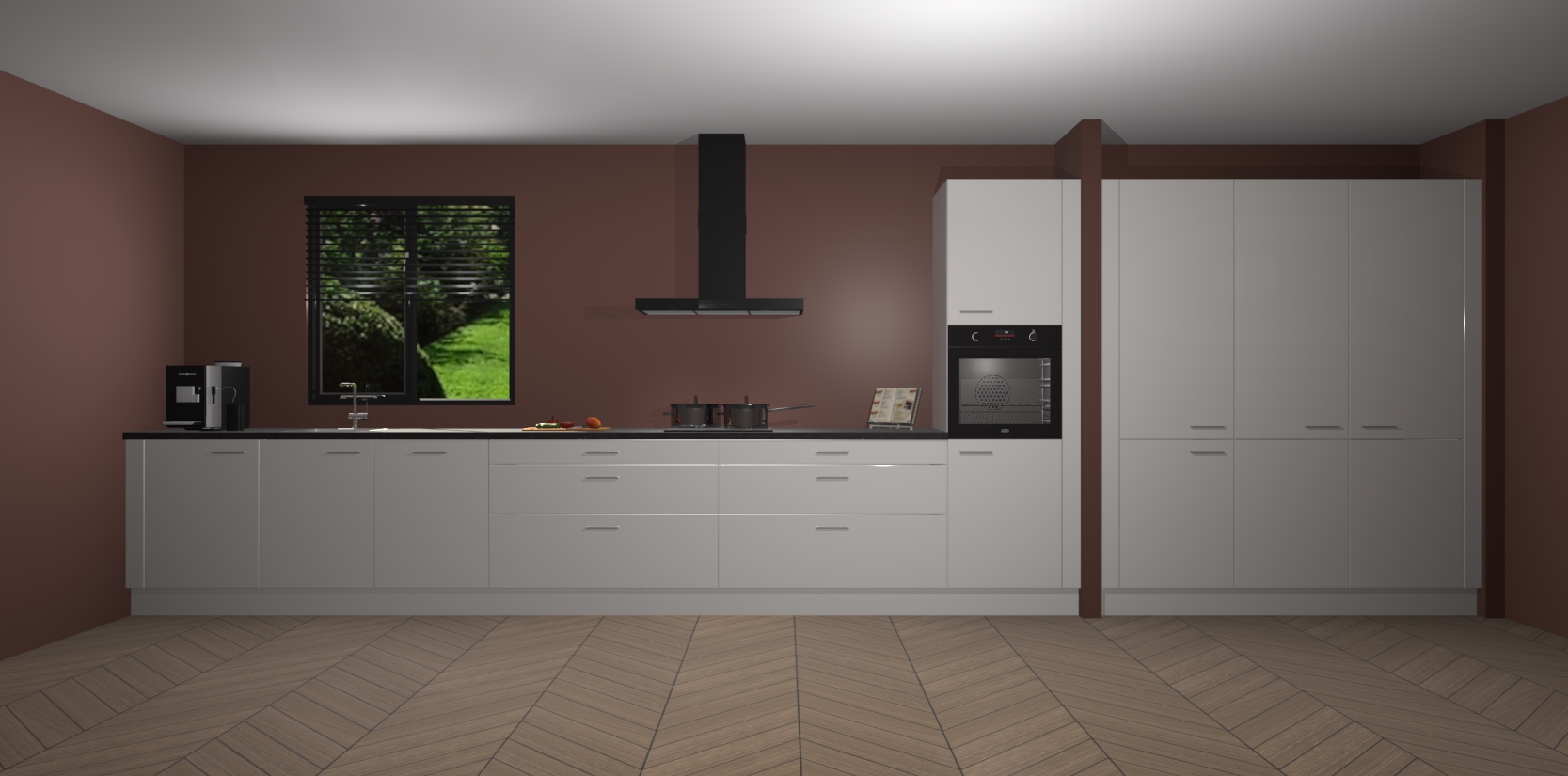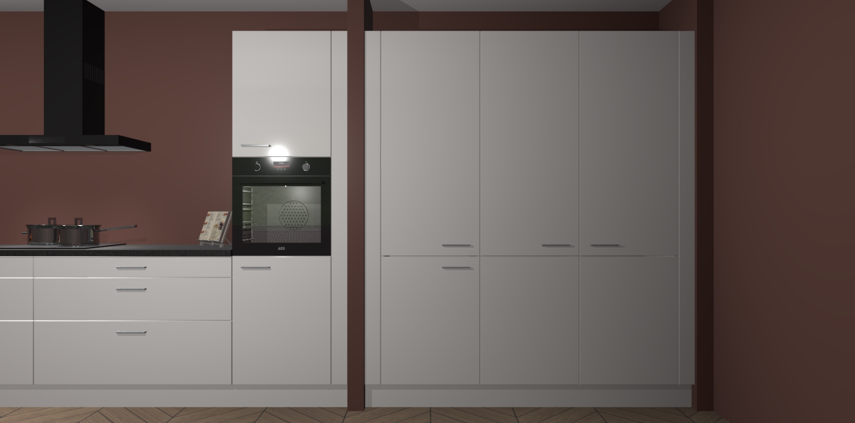 Een stijlvolle en praktische keuken als deze mag gezien worden. Dankzij de prachtige matte afwerking wordt de keuken gemakkelijk het middelpunt van uw huis - hij ziet er geweldig uit onder allerlei lichtomstandigheden, van dag tot nacht!