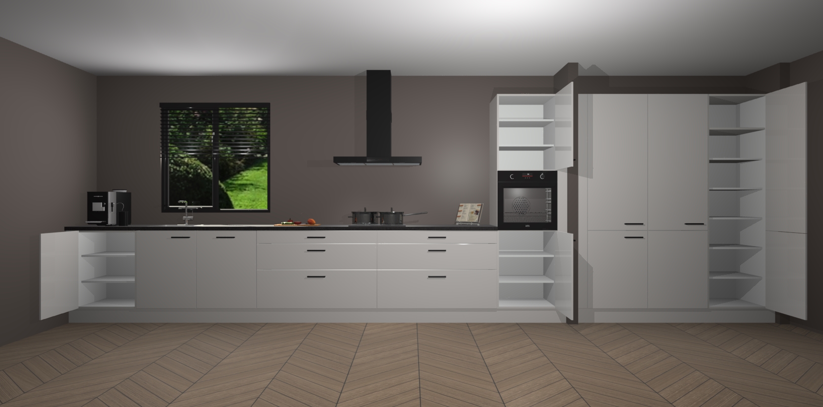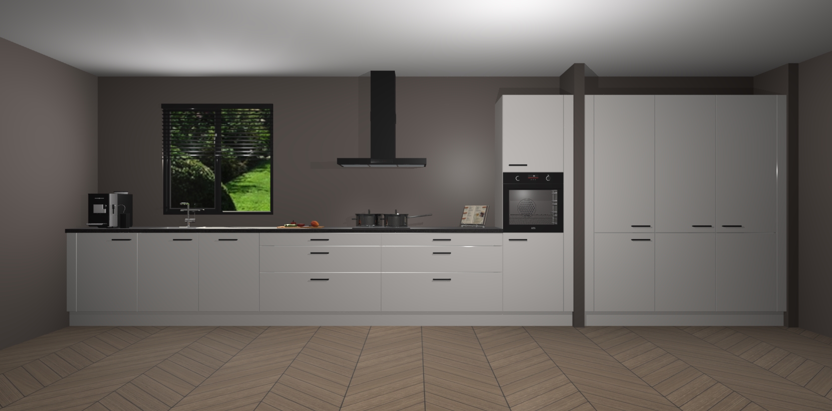 Een stijlvolle en praktische keuken als deze mag gezien worden. Dankzij de prachtige matte afwerking wordt de keuken gemakkelijk het middelpunt van uw huis - hij ziet er geweldig uit onder allerlei lichtomstandigheden, van dag tot nacht!