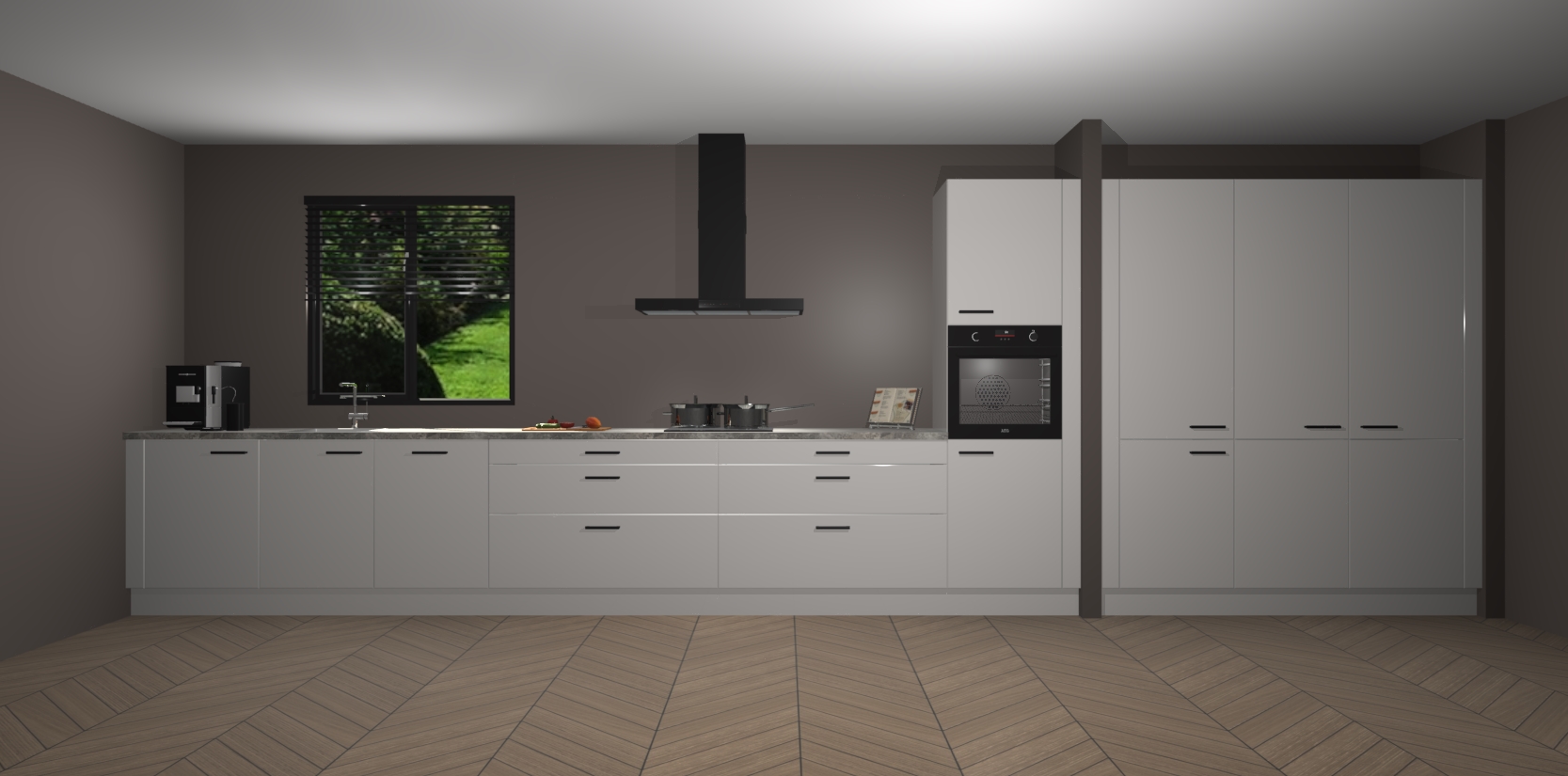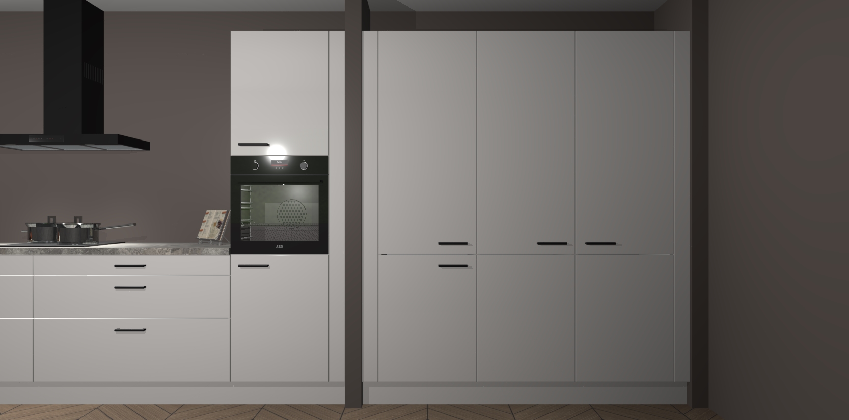 Een stijlvolle en praktische keuken als deze mag gezien worden. Dankzij de prachtige matte afwerking wordt de keuken gemakkelijk het middelpunt van uw huis - hij ziet er geweldig uit onder allerlei lichtomstandigheden, van dag tot nacht!
