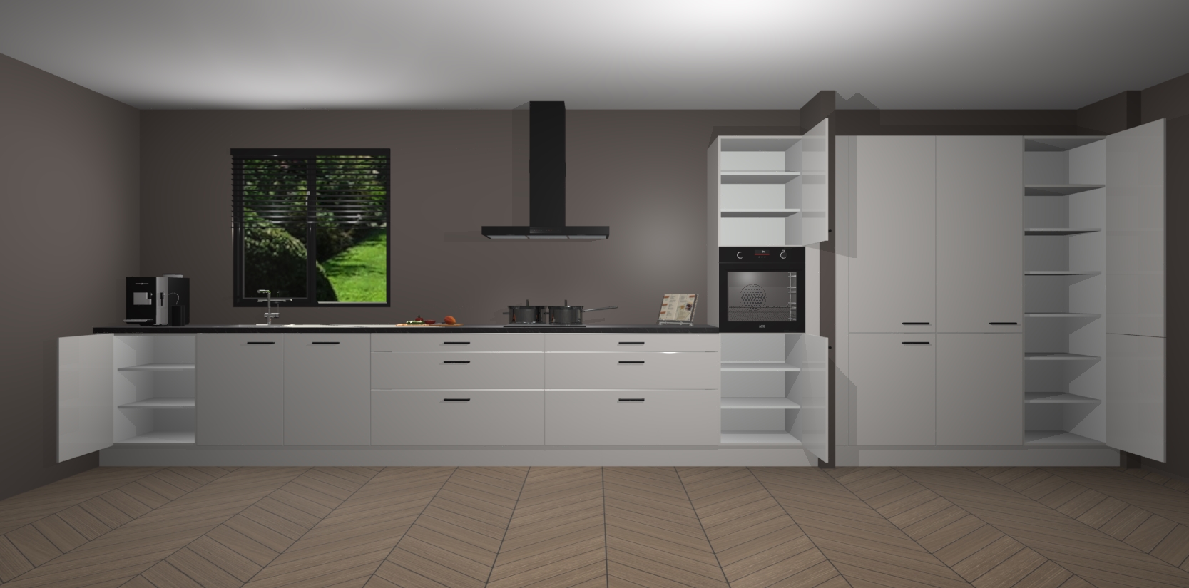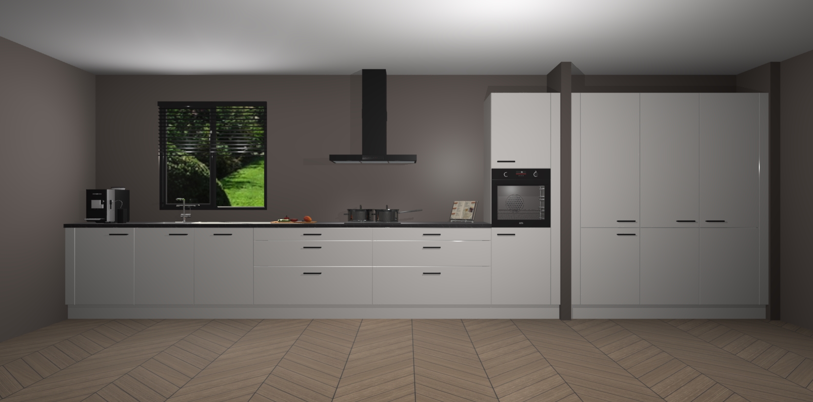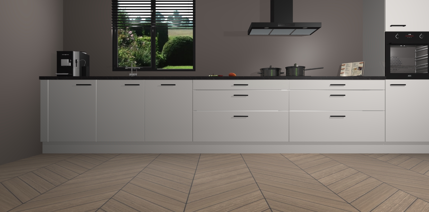 Een stijlvolle en praktische keuken als deze mag gezien worden. Dankzij de prachtige matte afwerking wordt de keuken gemakkelijk het middelpunt van uw huis - hij ziet er geweldig uit onder allerlei lichtomstandigheden, van dag tot nacht!
