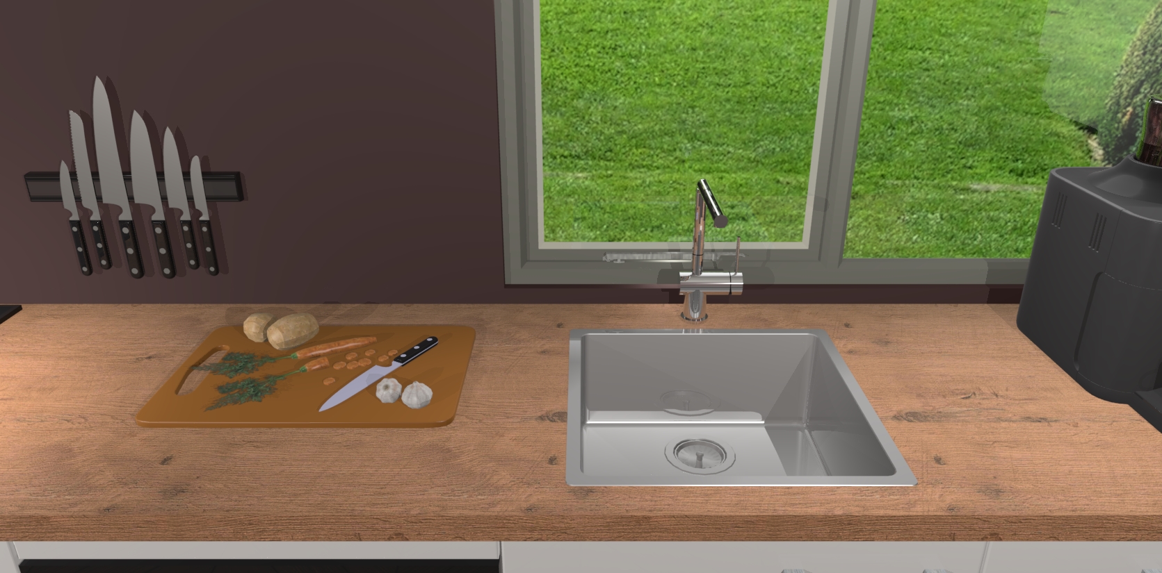 - De spoelbak is nog niet in gevreesd. Dit dient tijdens het werk gedaan te worden