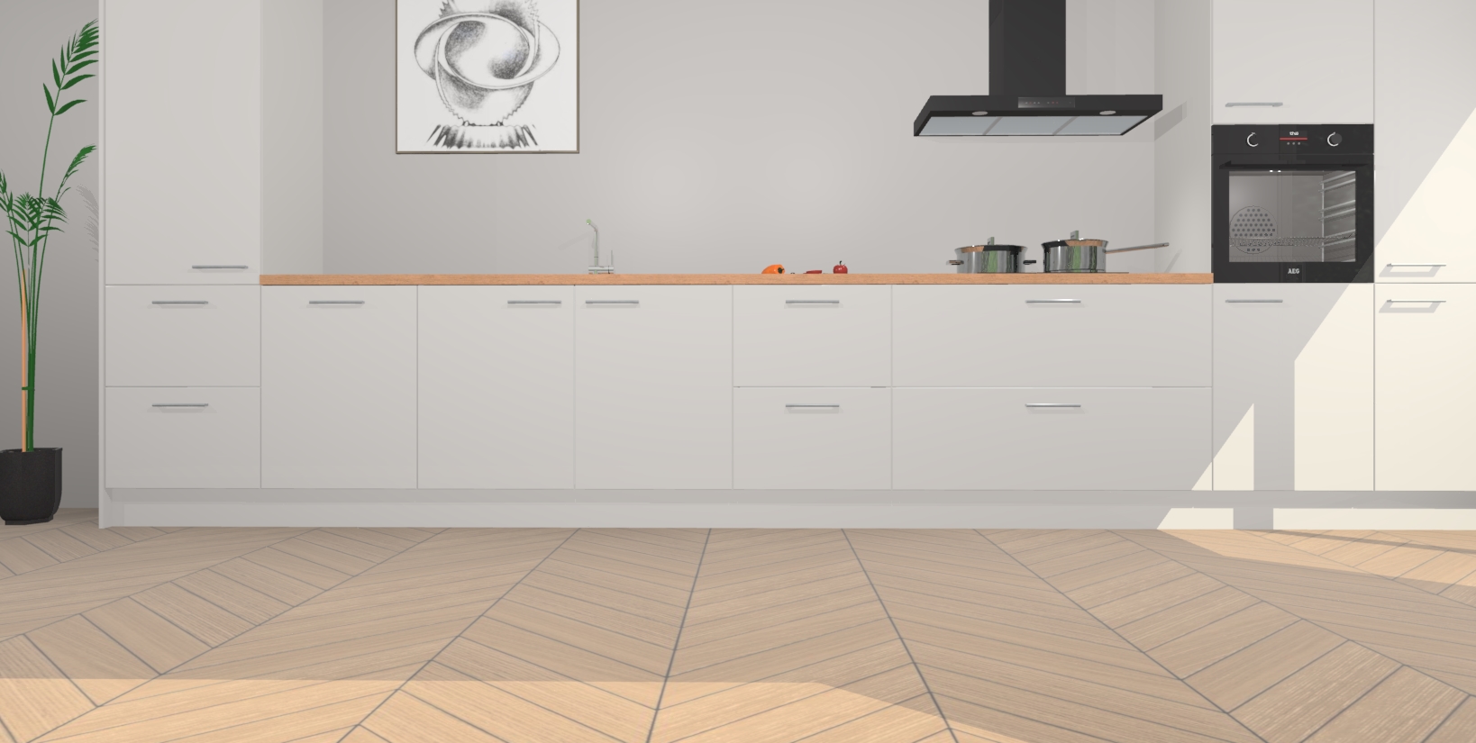 Inclusief plinten, stelpoten en werkblad
