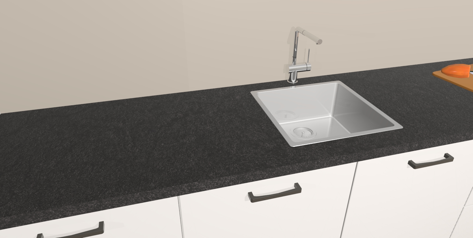 • De spoelbak is nog niet in gevreesd. Dit dient tijdens het werk gedaan te worden