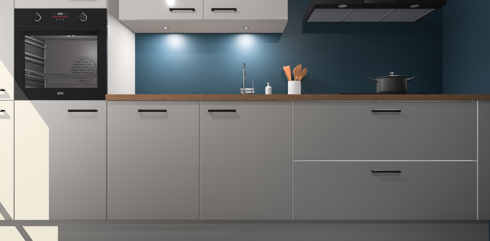 Inclusief plinten, stelpoten en werkblad
