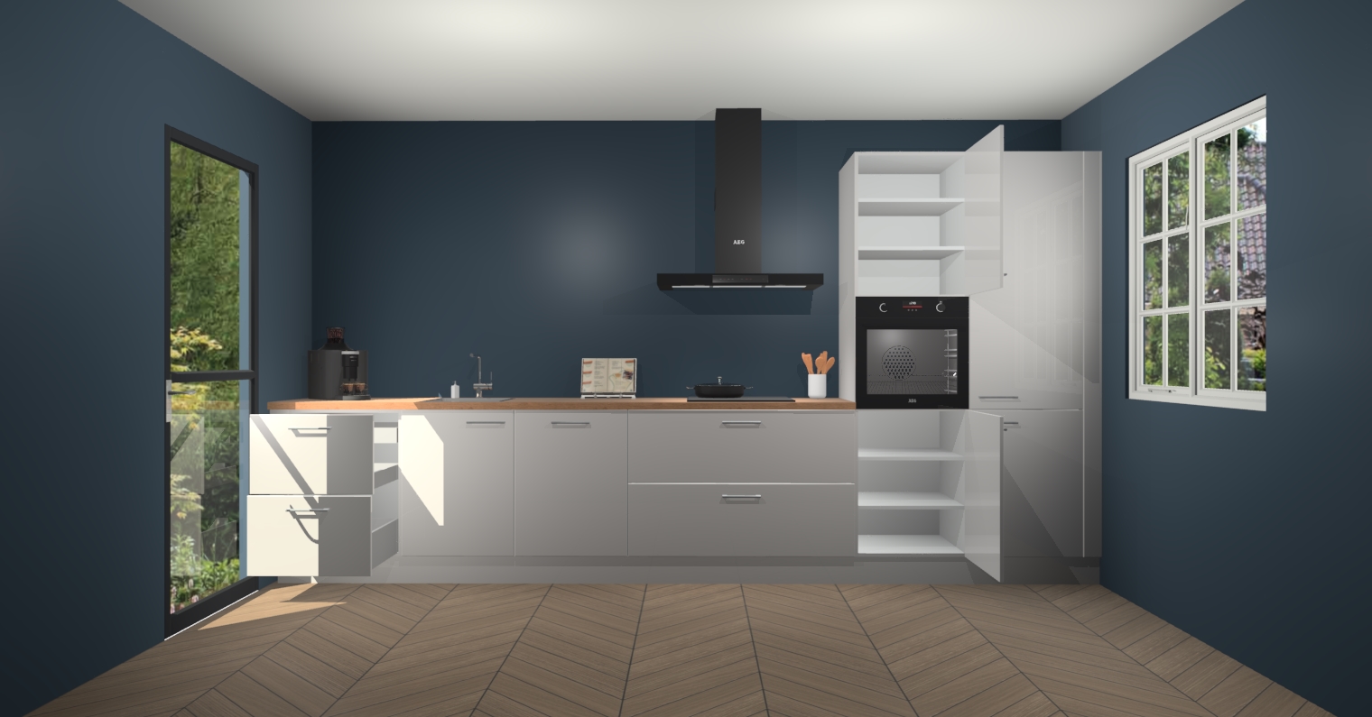 De Zijdegrijze hoogglans keuken Leuven is de perfecte mix van modern en tijdloos design. Met zijn prachtige glazen deuren op de bovenkastjes voegt hij echt iets speciaals en unieks toe aan elke keuken. En met vijf ingebouwde apparaten inbegrepen - een oven, inductiekookplaat, afzuigkap, vaatwasser en koelkast - kunt u deze keuken echt helemaal van uzelf maken! U kunt na bestelling ook upgraden naar AEG voor een nog hogere kwaliteitservaring.