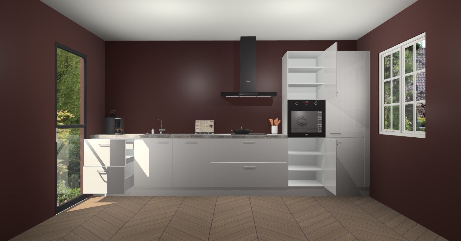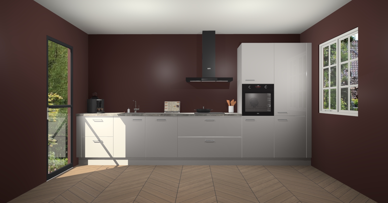 De Zijdegrijze hoogglans  keuken Leuven is de perfecte mix van modern en tijdloos design. Met zijn prachtige glazen deuren op de bovenkastjes voegt hij echt iets speciaals en unieks toe aan elke keuken. En met vijf ingebouwde apparaten inbegrepen - een oven, inductiekookplaat, afzuigkap, vaatwasser en koelkast - kunt u deze keuken echt helemaal van uzelf maken! U kunt na bestelling ook upgraden naar AEG voor een nog hogere kwaliteitservaring.