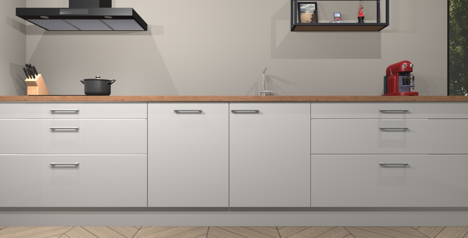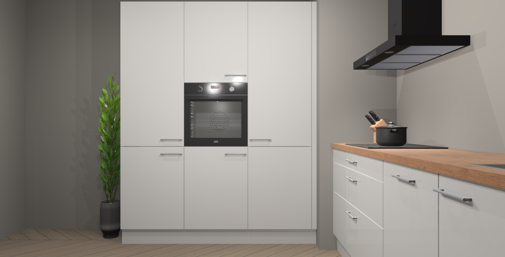De softclose deuren openen en sluiten is ook heel eenvoudig - geniet van een moeiteloze keukenervaring, zelfs als er kinderen rondlopen. Voor extra gemak bij het plaatsen van uw bestelling bieden we ook een upgrade naar een kookplaat met geïntegreerde afzuiging.