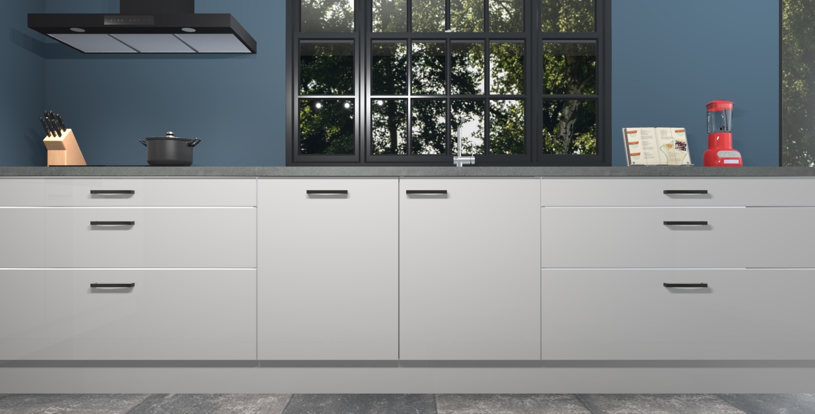 De softclose deuren openen en sluiten is ook heel eenvoudig - geniet van een moeiteloze keukenervaring, zelfs als er kinderen rondlopen. Voor extra gemak bij het plaatsen van uw bestelling bieden we ook een upgrade naar een kookplaat met geïntegreerde afzuiging.