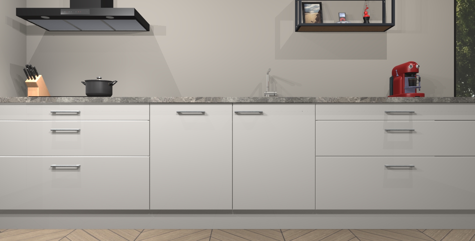 De softclose deuren openen en sluiten is ook heel eenvoudig - geniet van een moeiteloze keukenervaring, zelfs als er kinderen rondlopen. Voor extra gemak bij het plaatsen van uw bestelling bieden we ook een upgrade naar een kookplaat met geïntegreerde afzuiging.