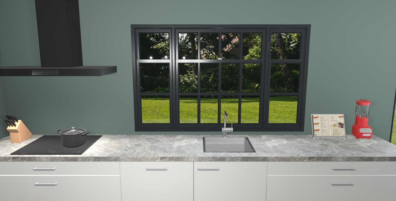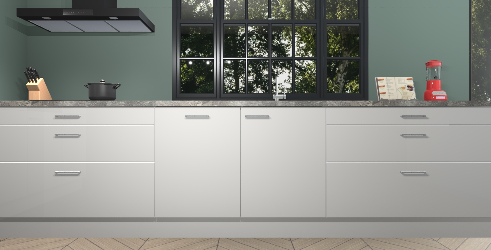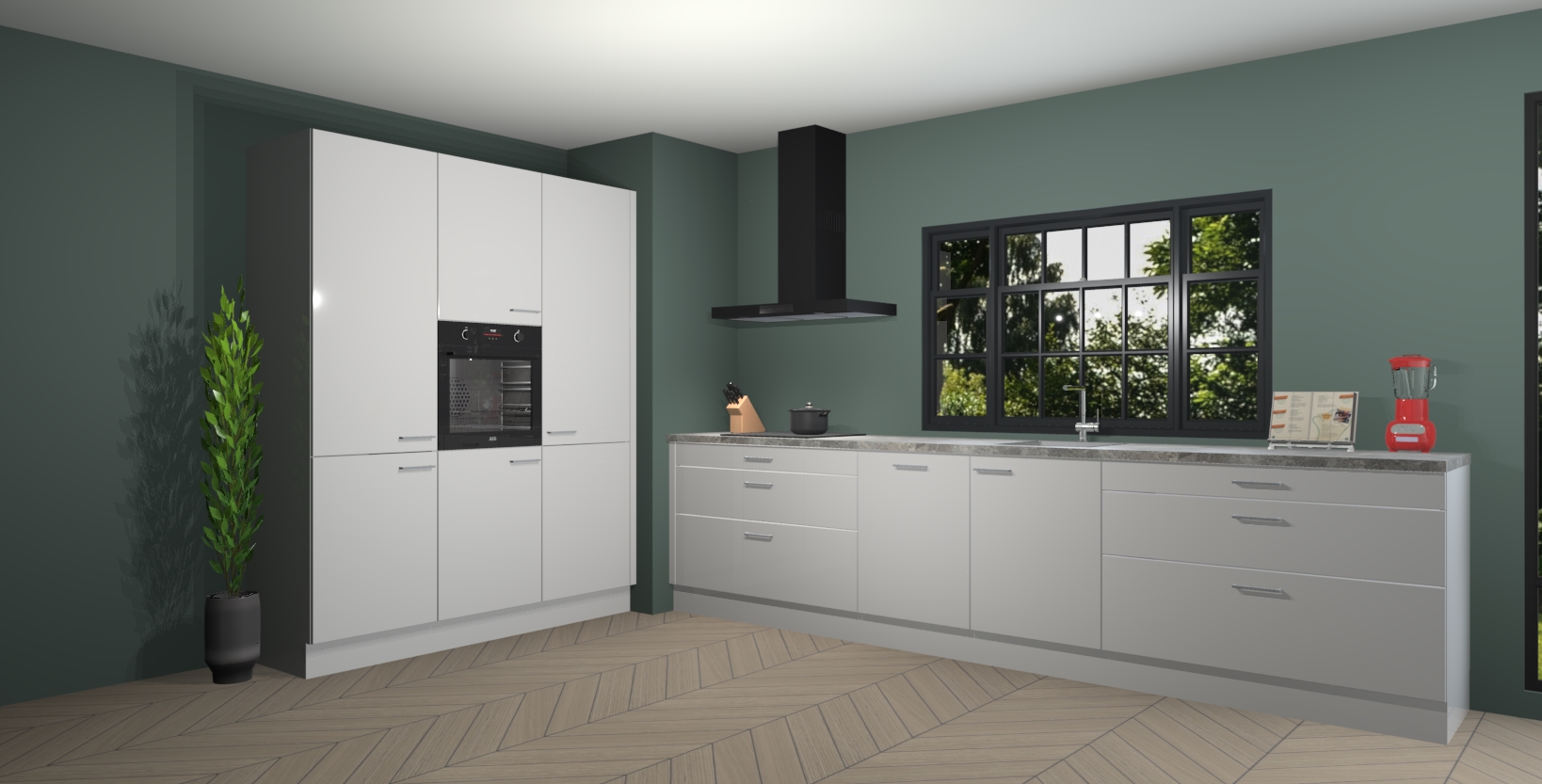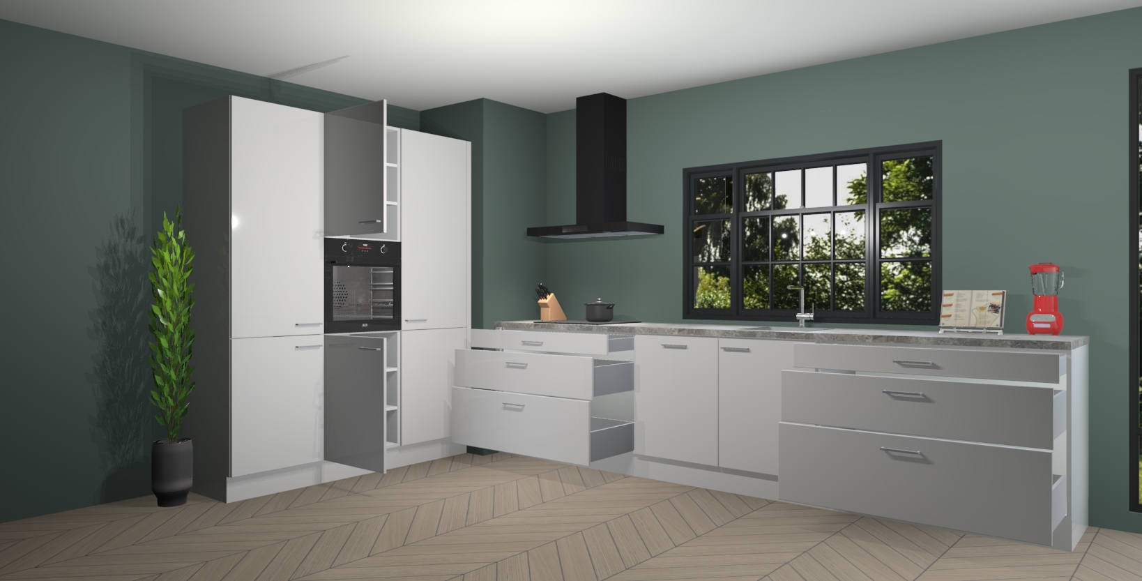De softclose deuren openen en sluiten is ook heel eenvoudig - geniet van een moeiteloze keukenervaring, zelfs als er kinderen rondlopen. Voor extra gemak bij het plaatsen van uw bestelling bieden we ook een upgrade naar een kookplaat met geïntegreerde afzuiging.