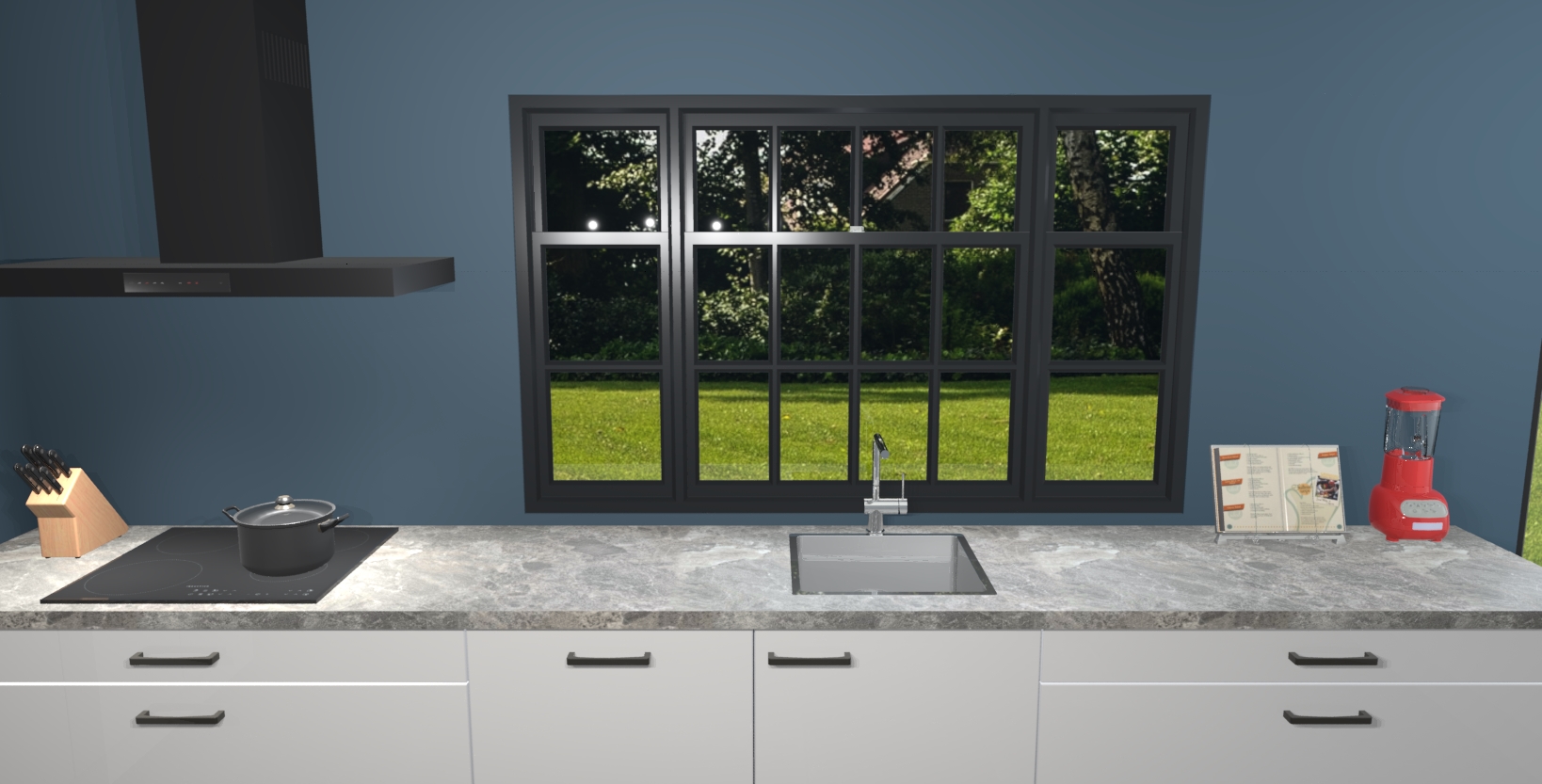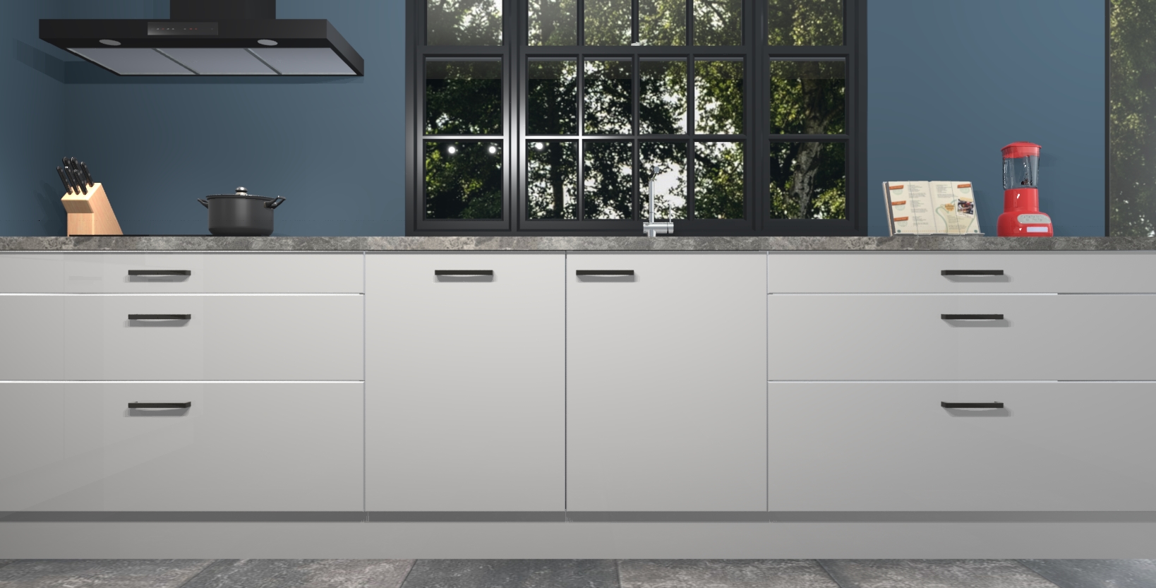 De softclose deuren openen en sluiten is ook heel eenvoudig - geniet van een moeiteloze keukenervaring, zelfs als er kinderen rondlopen. Voor extra gemak bij het plaatsen van uw bestelling bieden we ook een upgrade naar een kookplaat met geïntegreerde afzuiging.