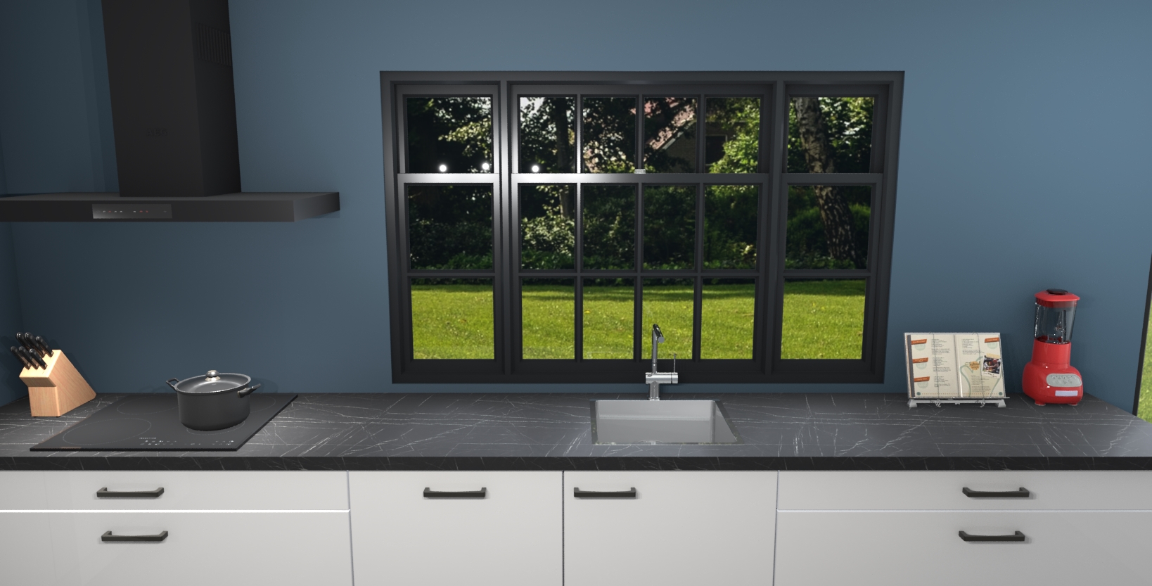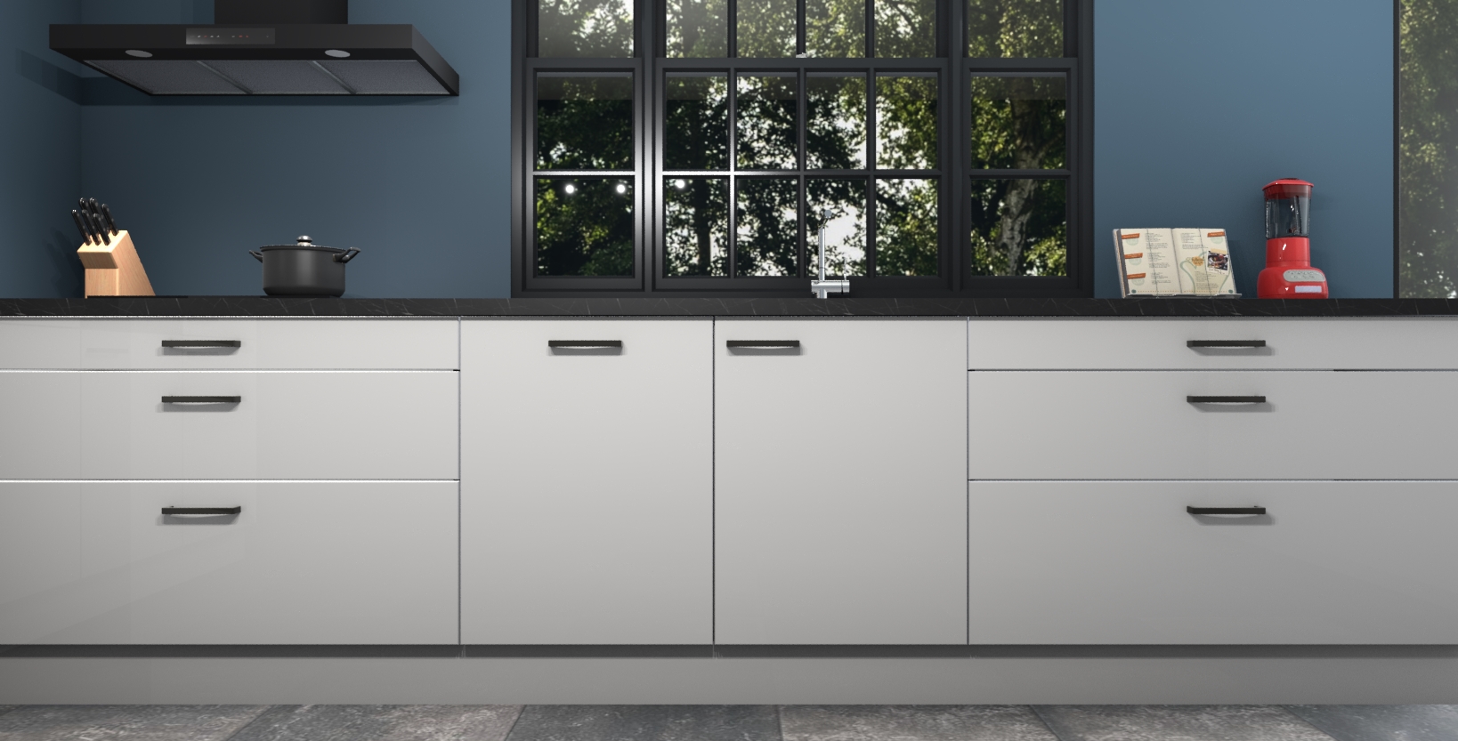 De softclose deuren openen en sluiten is ook heel eenvoudig - geniet van een moeiteloze keukenervaring, zelfs als er kinderen rondlopen. Voor extra gemak bij het plaatsen van uw bestelling bieden we ook een upgrade naar een kookplaat met geïntegreerde afzuiging.