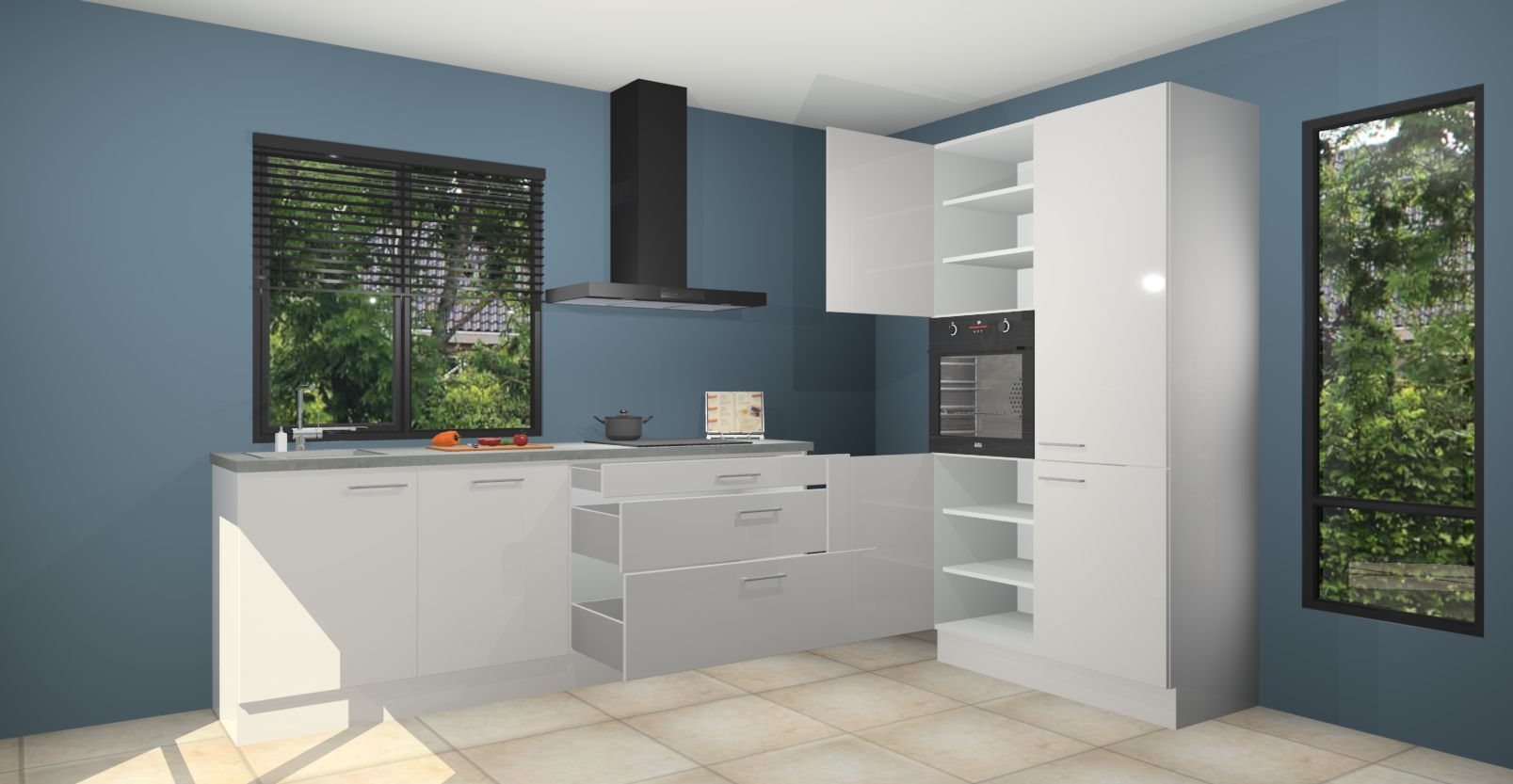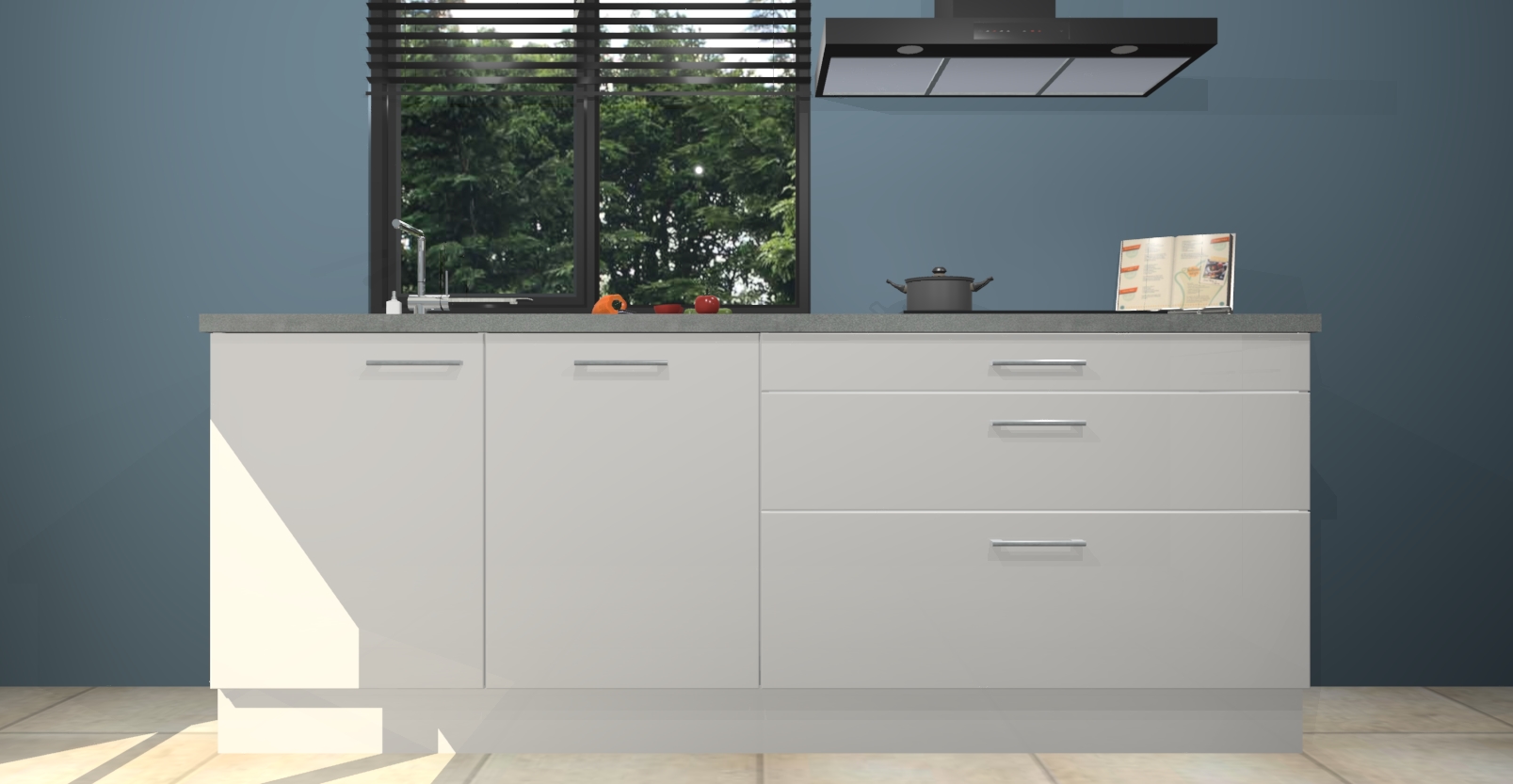 De setting is compleet gemaakt door de vijf inbouwapparaten: wanneer u gaat bestellen kunt u upgraden naar AEG-apparaten als oven, inductieplaat, afzuigkap, vaatwasser en koelkast. Kiest u voor onze Zijdegrijze hoogglans keuken Monaco, dan weet u zeker dat u te maken heeft met Duitse kwaliteit. Bovendien is er altijd sprake van een lage prijs en profiteren we aantrekkelijk leveringstermijn: die bedraagt slechts 7 weken ! Om het extra makkelijk te maken worden de keukenkasten reeds voorgemonteerd geleverd.