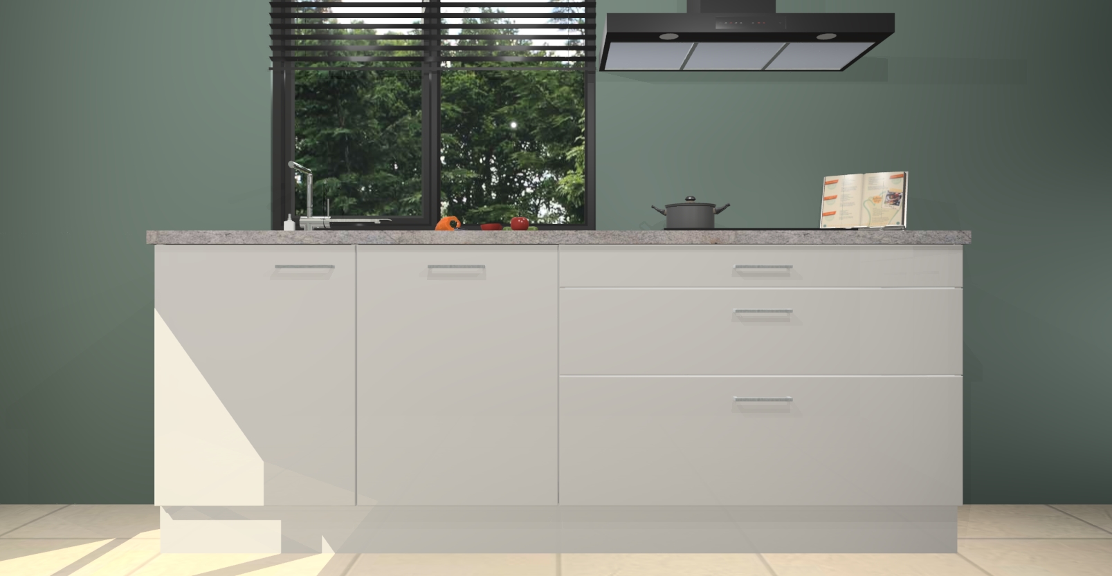 De setting is compleet gemaakt door de vijf inbouwapparaten: wanneer u gaat bestellen kunt u upgraden naar AEG-apparaten als oven, inductieplaat, afzuigkap, vaatwasser en koelkast. Kiest u voor onze Zijdegrijze hoogglans keuken Monaco, dan weet u zeker dat u te maken heeft met Duitse kwaliteit. Bovendien is er altijd sprake van een lage prijs en profiteren we aantrekkelijk leveringstermijn: die bedraagt slechts 7 weken ! Om het extra makkelijk te maken worden de keukenkasten reeds voorgemonteerd geleverd.