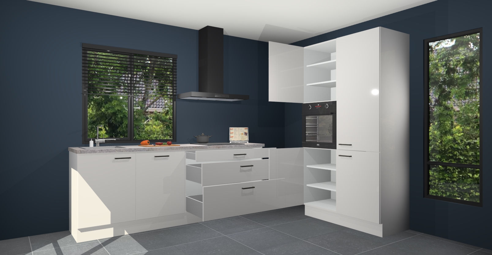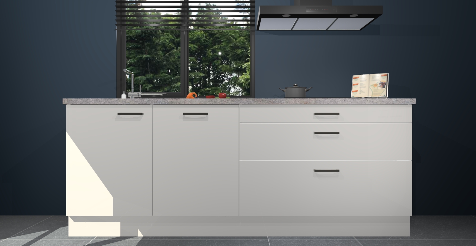 De setting is compleet gemaakt door de vijf inbouwapparaten: wanneer u gaat bestellen kunt u upgraden naar AEG-apparaten als oven, inductieplaat, afzuigkap, vaatwasser en koelkast. Kiest u voor onze Zijdegrijze hoogglans keuken Monaco, dan weet u zeker dat u te maken heeft met Duitse kwaliteit. Bovendien is er altijd sprake van een lage prijs en profiteren we aantrekkelijk leveringstermijn: die bedraagt slechts 7 weken ! Om het extra makkelijk te maken worden de keukenkasten reeds voorgemonteerd geleverd.