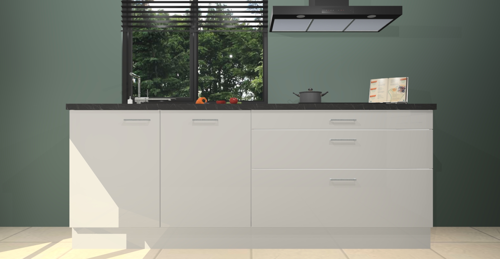 De setting is compleet gemaakt door de vijf inbouwapparaten: wanneer u gaat bestellen kunt u upgraden naar AEG-apparaten als oven, inductieplaat, afzuigkap, vaatwasser en koelkast. Kiest u voor onze Zijdegrijze hoogglans keuken Monaco, dan weet u zeker dat u te maken heeft met Duitse kwaliteit. Bovendien is er altijd sprake van een lage prijs en profiteren we aantrekkelijk leveringstermijn: die bedraagt slechts 7 weken ! Om het extra makkelijk te maken worden de keukenkasten reeds voorgemonteerd geleverd.