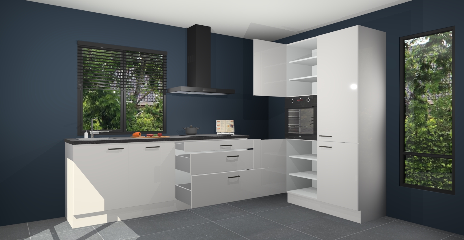 De setting is compleet gemaakt door de vijf inbouwapparaten: wanneer u gaat bestellen kunt u upgraden naar AEG-apparaten als oven, inductieplaat, afzuigkap, vaatwasser en koelkast. Kiest u voor onze Zijdegrijze hoogglans keuken Monaco, dan weet u zeker dat u te maken heeft met Duitse kwaliteit. Bovendien is er altijd sprake van een lage prijs en profiteren we aantrekkelijk leveringstermijn: die bedraagt slechts 7 weken ! Om het extra makkelijk te maken worden de keukenkasten reeds voorgemonteerd geleverd.