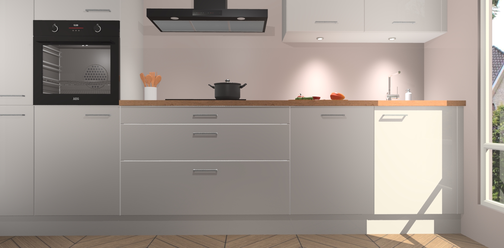 Inclusief plinten, stelpoten en werkblad