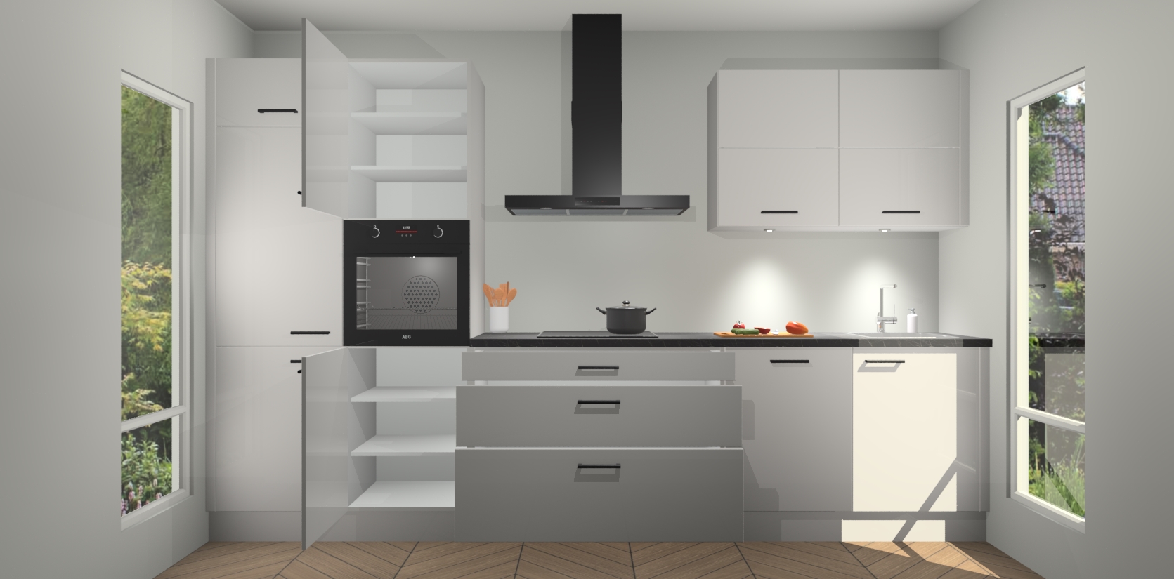 Inclusief plinten, stelpoten en werkblad