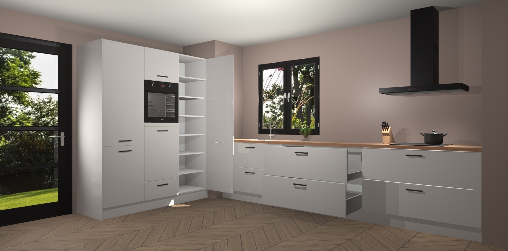 De softclose deuren openen en sluiten is ook heel eenvoudig - geniet van een moeiteloze keukenervaring, zelfs als er kinderen rondlopen. Voor extra gemak bij het plaatsen van uw bestelling bieden we ook een upgrade naar een kookplaat met geïntegreerde afzuiging.