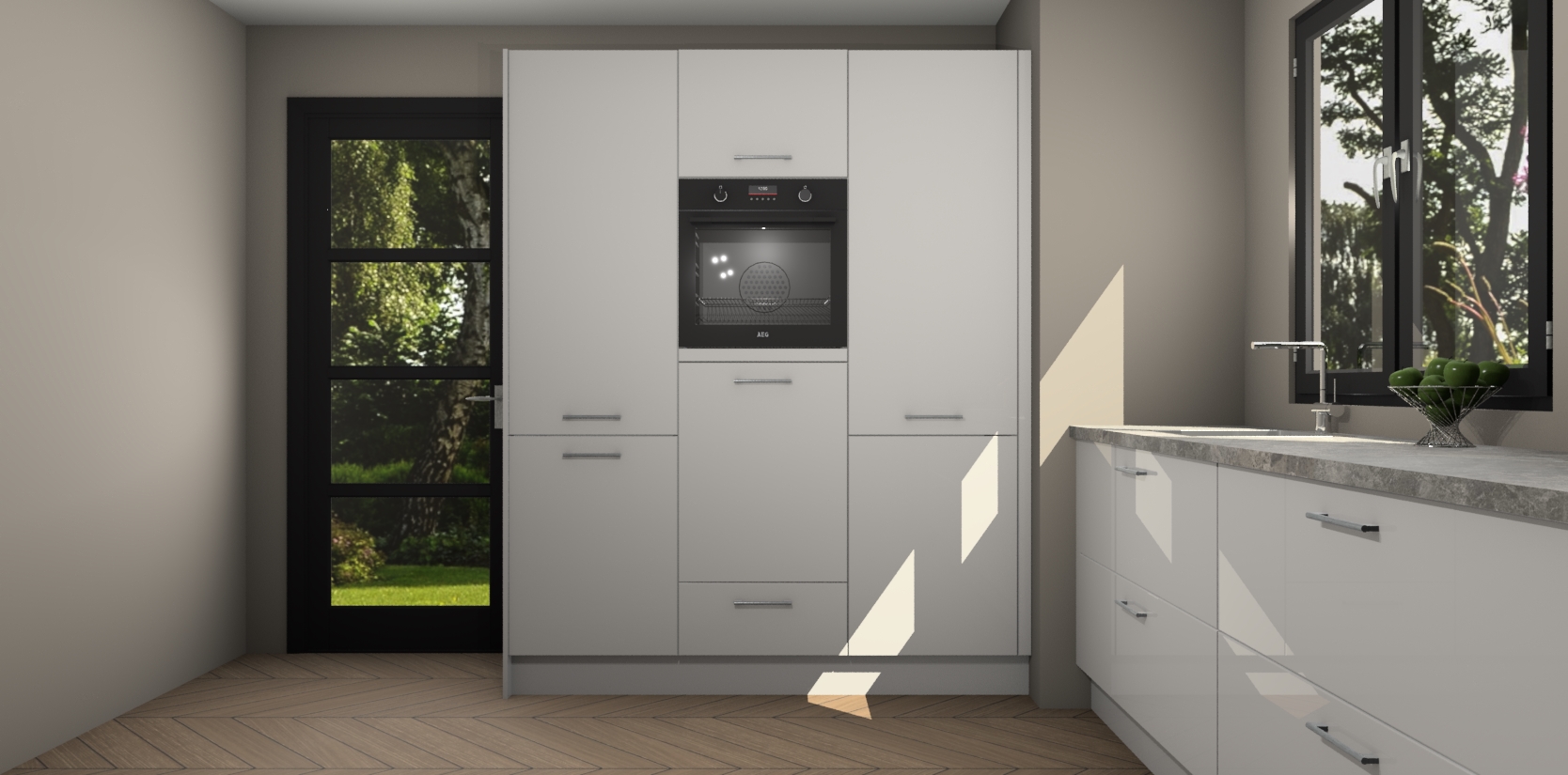 De softclose deuren openen en sluiten is ook heel eenvoudig - geniet van een moeiteloze keukenervaring, zelfs als er kinderen rondlopen. Voor extra gemak bij het plaatsen van uw bestelling bieden we ook een upgrade naar een kookplaat met geïntegreerde afzuiging.