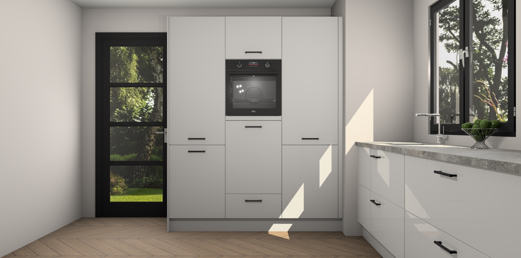 De softclose deuren openen en sluiten is ook heel eenvoudig - geniet van een moeiteloze keukenervaring, zelfs als er kinderen rondlopen. Voor extra gemak bij het plaatsen van uw bestelling bieden we ook een upgrade naar een kookplaat met geïntegreerde afzuiging.