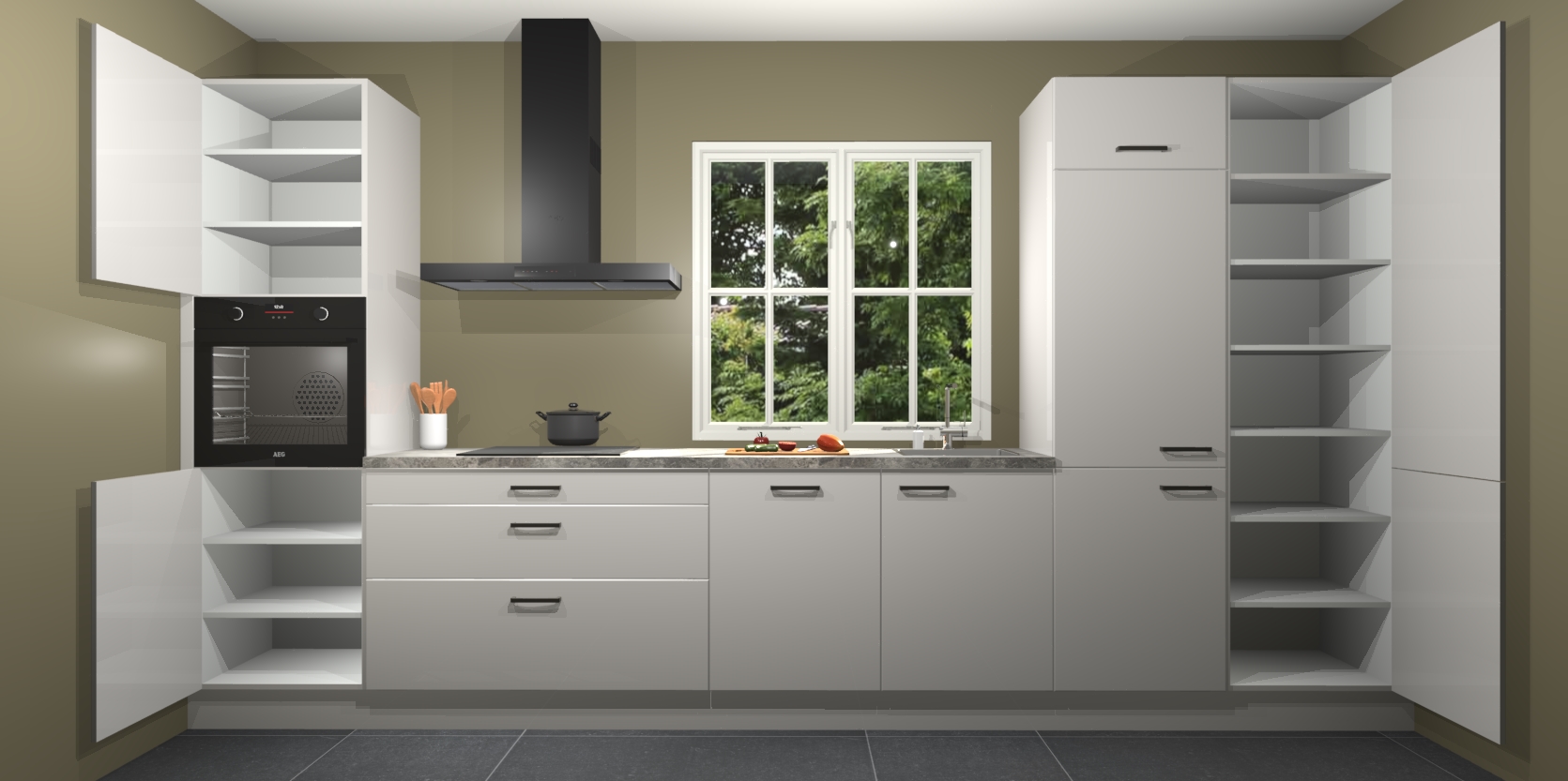 In deze box zijn alle kleuren verzameld van de deuren en werkbladen. Vraag de gratis kleurenbox aan en kijk thuis rustig verder!
