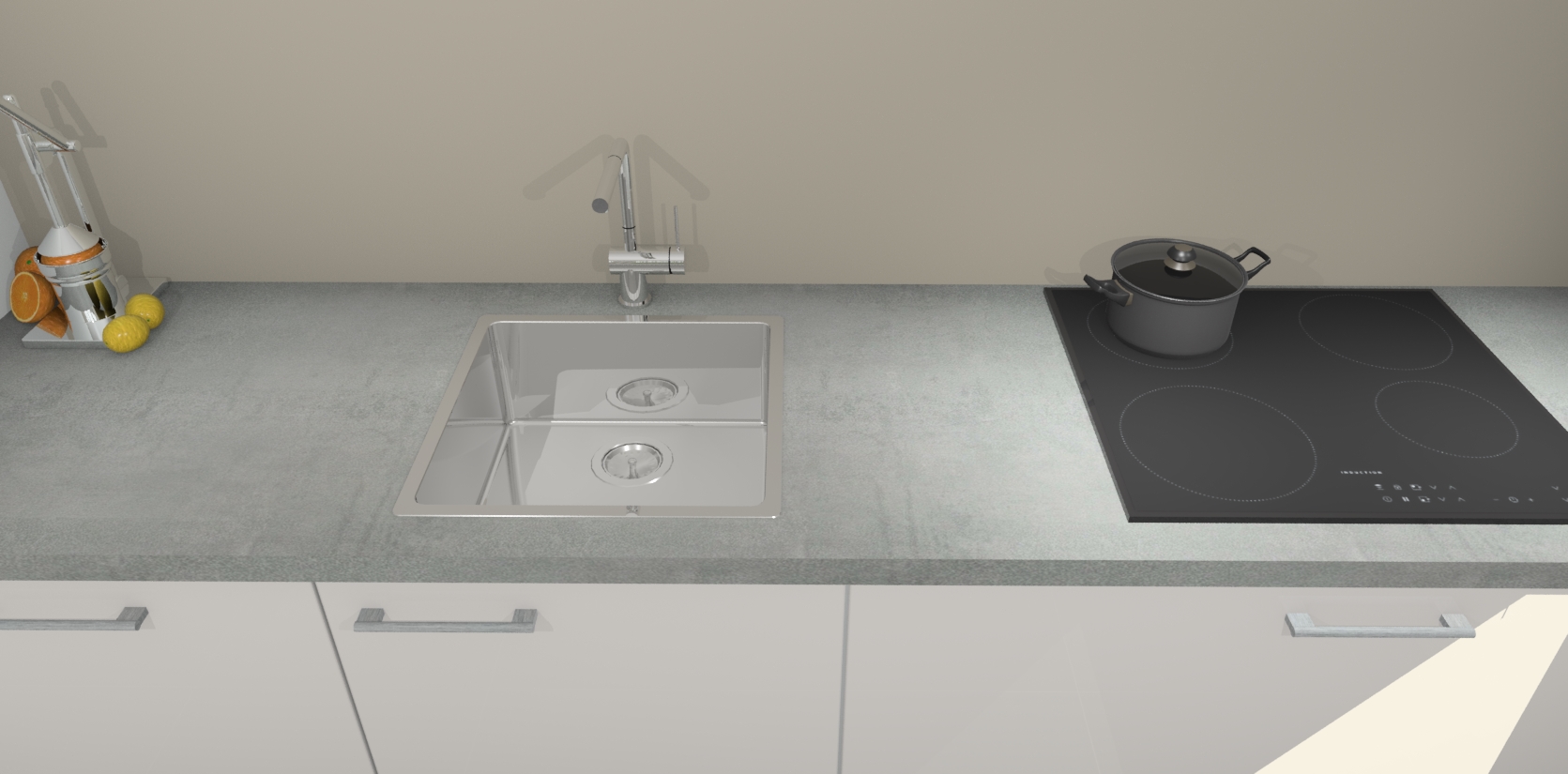 • De spoelbak is nog niet in gevreesd, dit dient tijdens het werk gedaan te worden