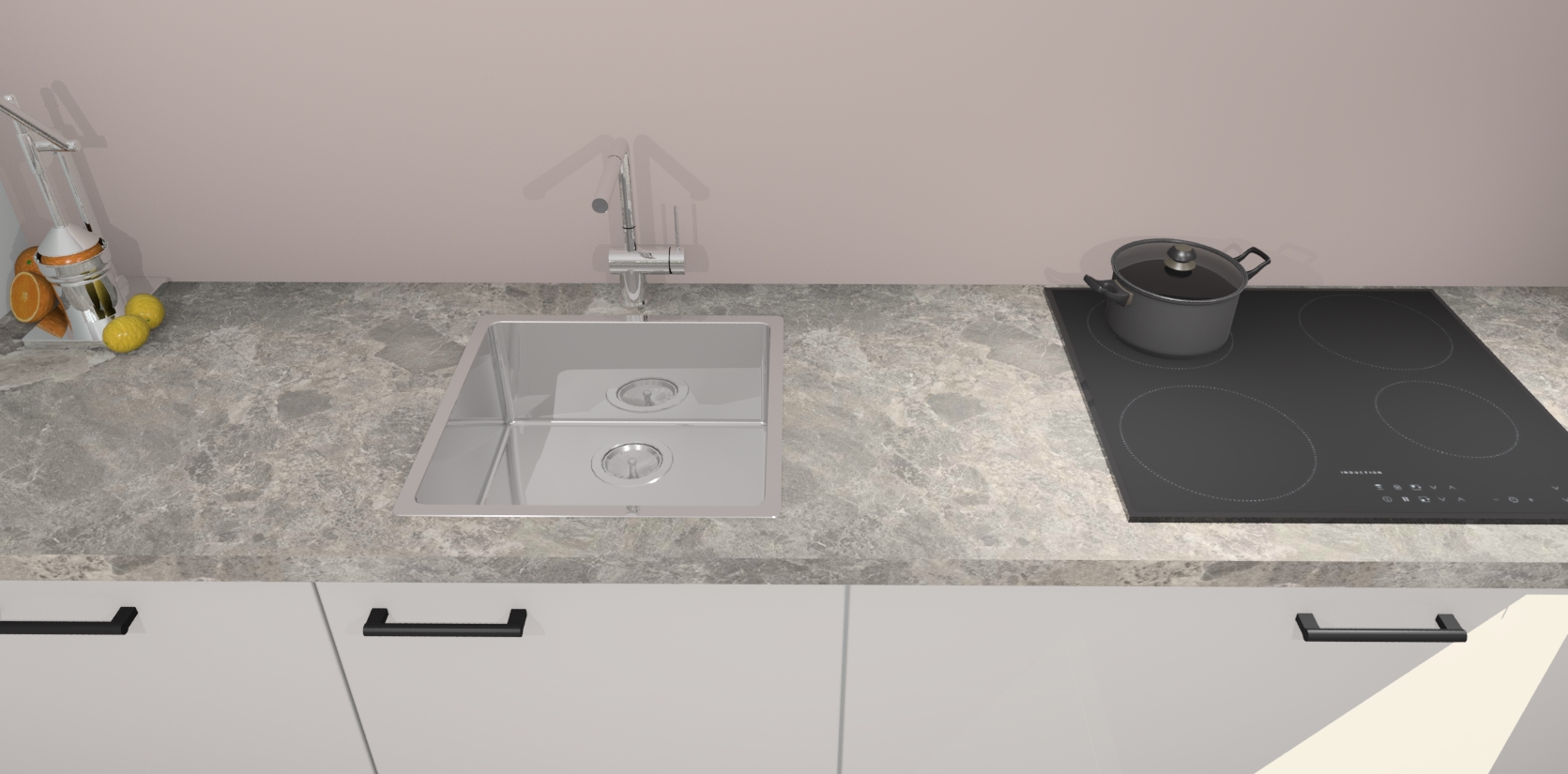 - Uitsparing van kookplaat, spoelbak en kraan dient u zelf te verzorgen.