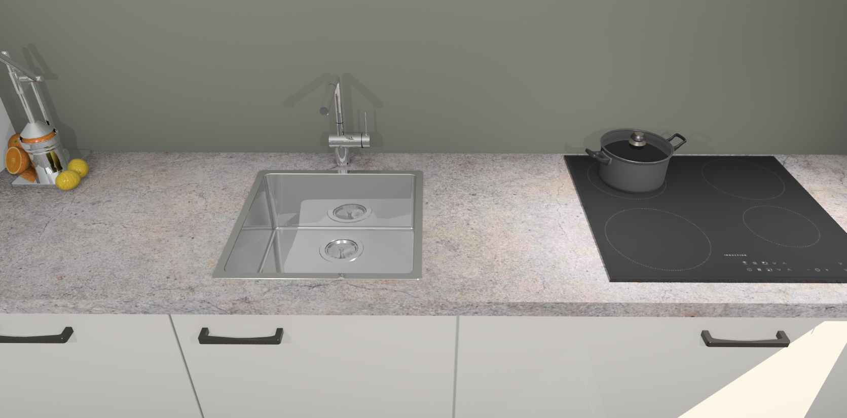 - Uitsparing van kookplaat, spoelbak en kraan dient u zelf te verzorgen.