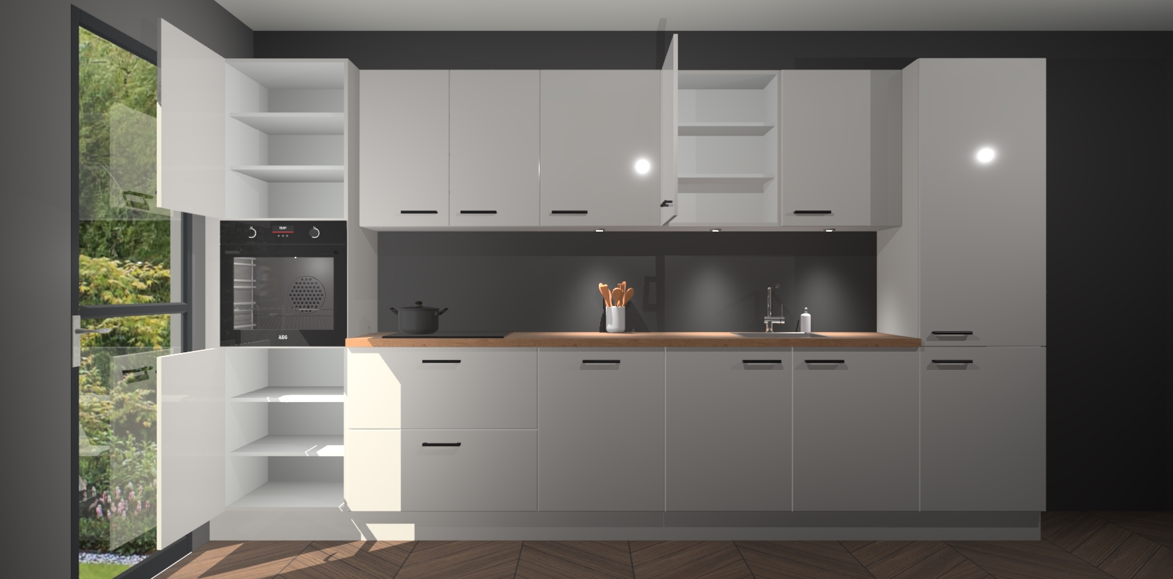 Dit is de perfecte keuken voor wie op zoek is naar een luxueuze stijl zonder zijn portemonnee te legen! Het chique ontwerp van de zijdegrijze hoogglans keuken Wels voegt dat vleugje verfijning toe aan elk huis. Het gemak van voorgemonteerde kasten bespaart u talloze uren tijd en energie, zodat u veel sneller dan verwacht kunt beginnen te genieten van uw prachtige nieuwe keuken. Bovendien bedraagt de levertijd slechts 7 weken.