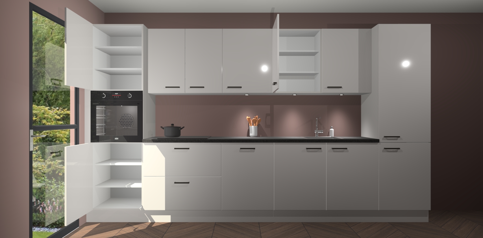 Dit is de perfecte keuken voor wie op zoek is naar een luxueuze stijl zonder zijn portemonnee te legen! Het chique ontwerp van de zijdegrijze hoogglans keuken Wels voegt dat vleugje verfijning toe aan elk huis. Het gemak van voorgemonteerde kasten bespaart u talloze uren tijd en energie, zodat u veel sneller dan verwacht kunt beginnen te genieten van uw prachtige nieuwe keuken. Bovendien bedraagt de levertijd slechts 7 weken.