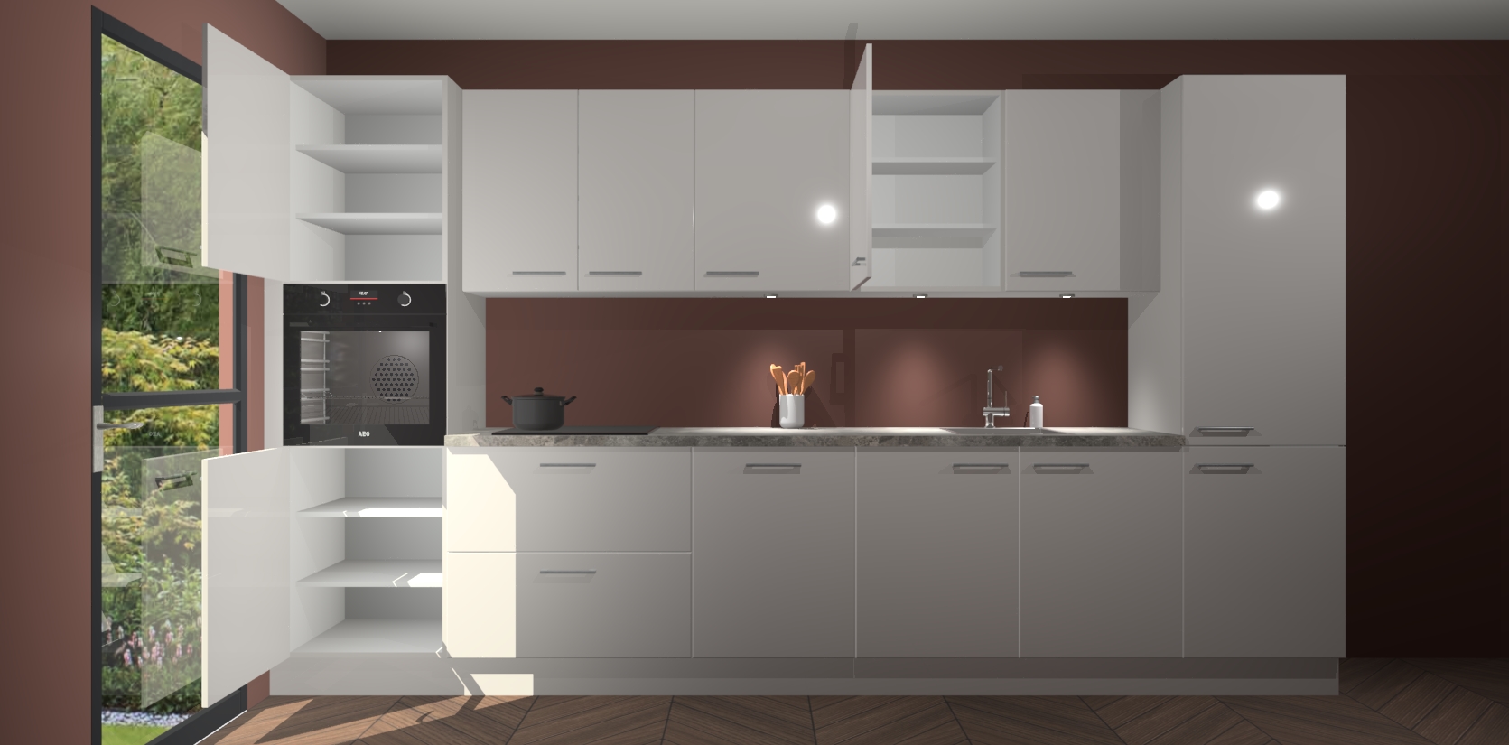 Dit is de perfecte keuken voor wie op zoek is naar een luxueuze stijl zonder zijn portemonnee te legen! Het chique ontwerp van de zijdegrijze hoogglans keuken Wels voegt dat vleugje verfijning toe aan elk huis. Het gemak van voorgemonteerde kasten bespaart u talloze uren tijd en energie, zodat u veel sneller dan verwacht kunt beginnen te genieten van uw prachtige nieuwe keuken. Bovendien bedraagt de levertijd slechts 7 weken.