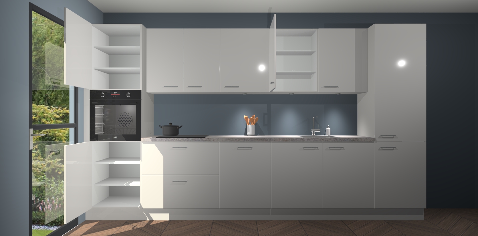 Dit is de perfecte keuken voor wie op zoek is naar een luxueuze stijl zonder zijn portemonnee te legen! Het chique ontwerp van de zijdegrijze hoogglans keuken Wels voegt dat vleugje verfijning toe aan elk huis. Het gemak van voorgemonteerde kasten bespaart u talloze uren tijd en energie, zodat u veel sneller dan verwacht kunt beginnen te genieten van uw prachtige nieuwe keuken. Bovendien bedraagt de levertijd slechts 7 weken.