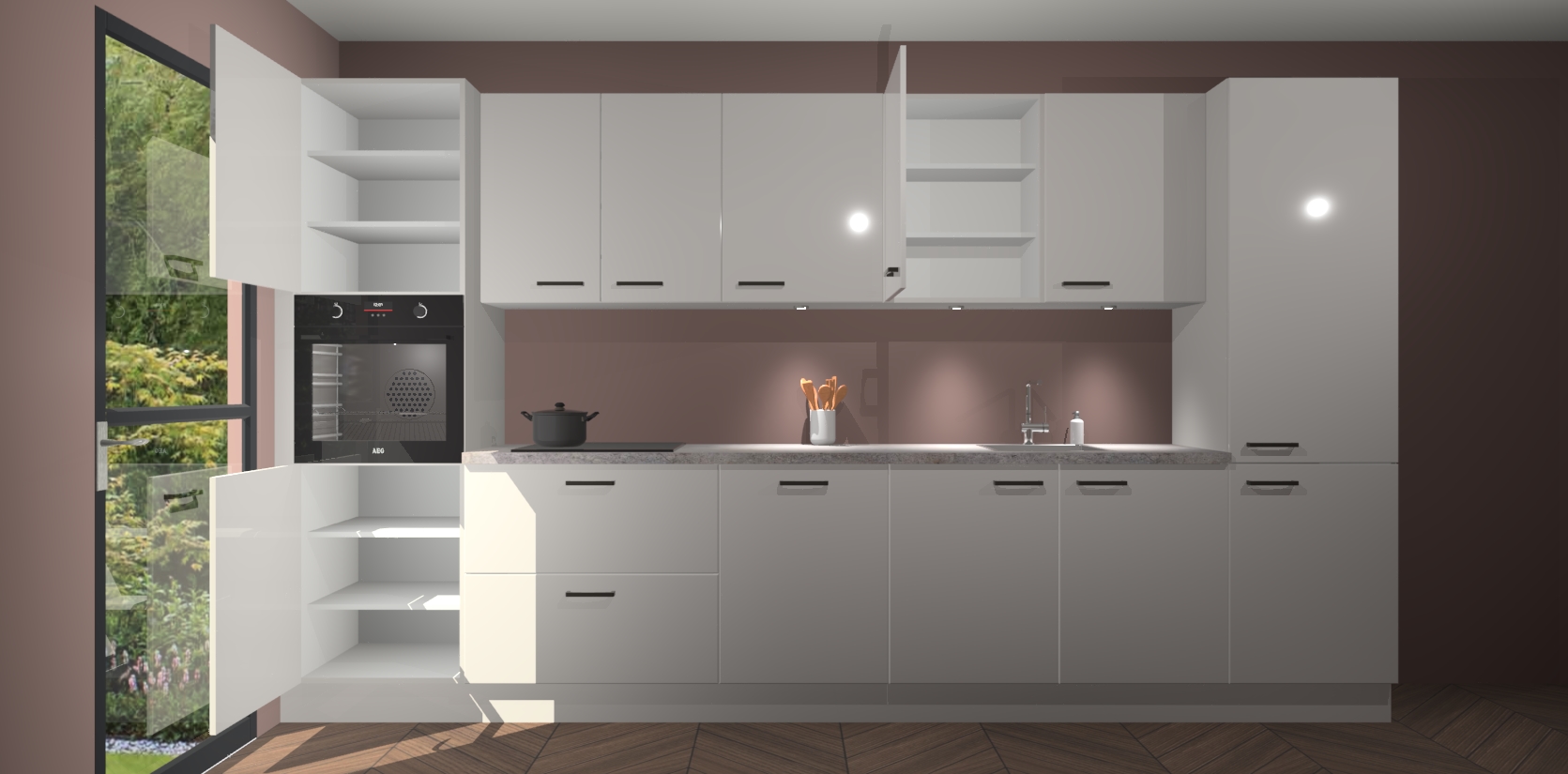 Dit is de perfecte keuken voor wie op zoek is naar een luxueuze stijl zonder zijn portemonnee te legen! Het chique ontwerp van de zijdegrijze hoogglans keuken Wels voegt dat vleugje verfijning toe aan elk huis. Het gemak van voorgemonteerde kasten bespaart u talloze uren tijd en energie, zodat u veel sneller dan verwacht kunt beginnen te genieten van uw prachtige nieuwe keuken. Bovendien bedraagt de levertijd slechts 7 weken.