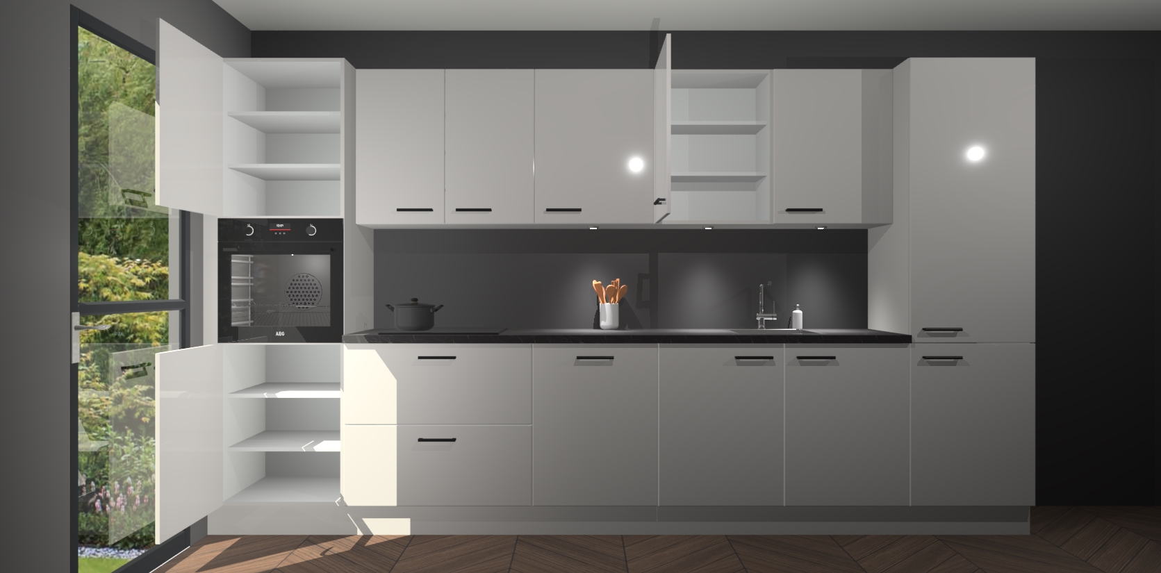 Dit is de perfecte keuken voor wie op zoek is naar een luxueuze stijl zonder zijn portemonnee te legen! Het chique ontwerp van de zijdegrijze hoogglans keuken Wels voegt dat vleugje verfijning toe aan elk huis. Het gemak van voorgemonteerde kasten bespaart u talloze uren tijd en energie, zodat u veel sneller dan verwacht kunt beginnen te genieten van uw prachtige nieuwe keuken. Bovendien bedraagt de levertijd slechts 7 weken.