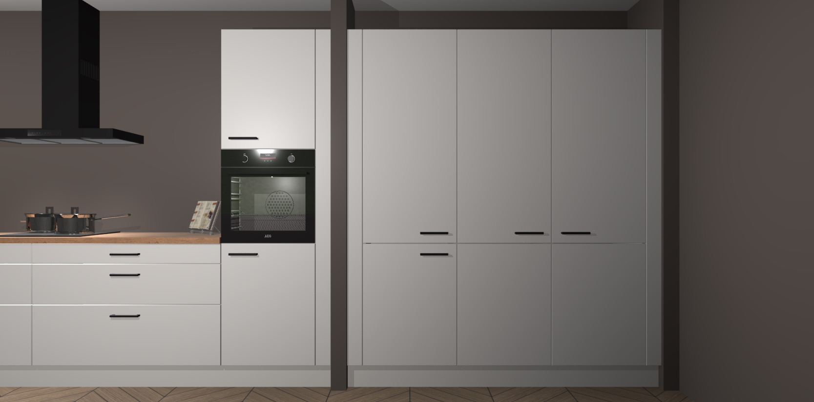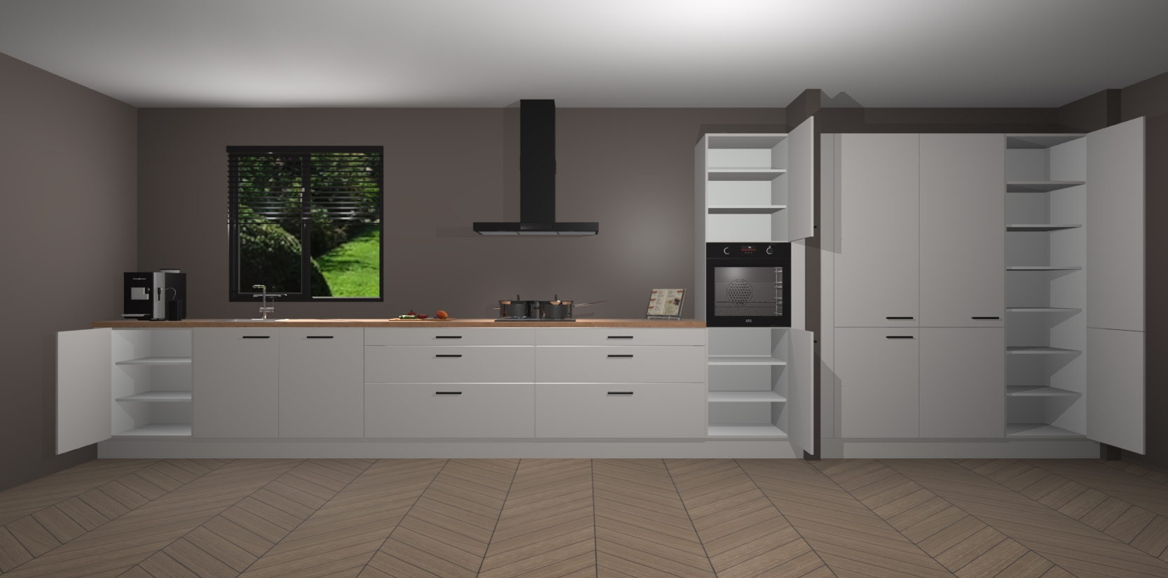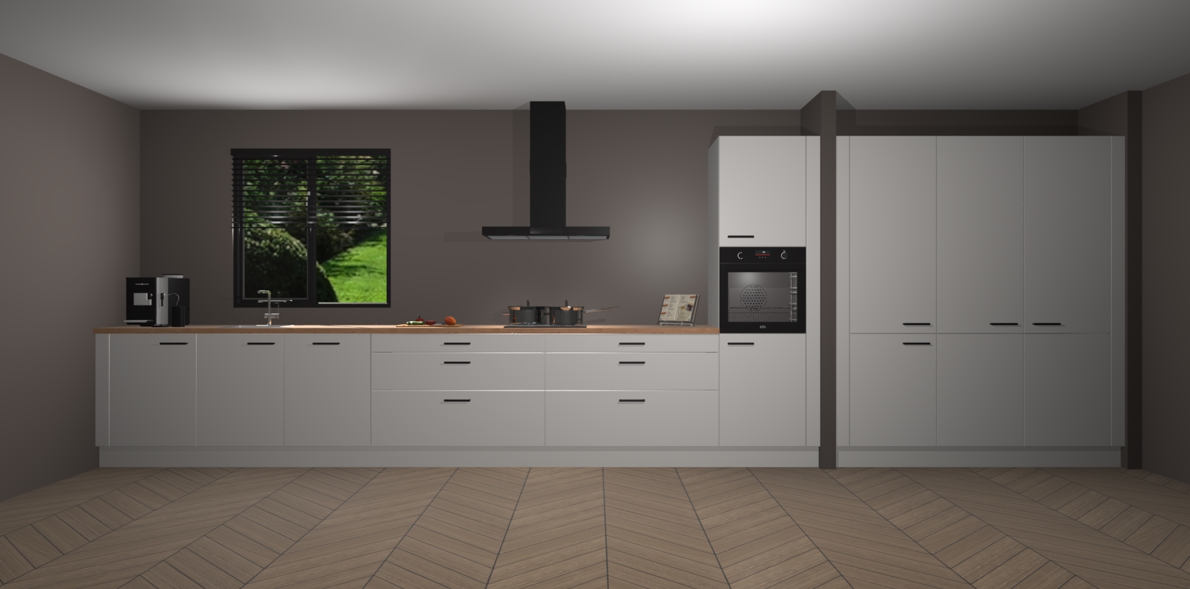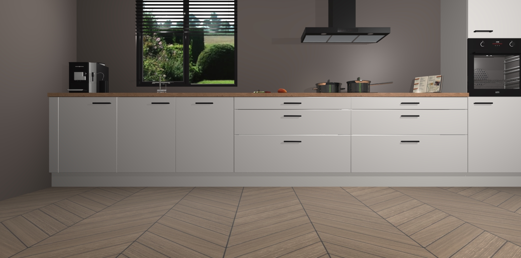 Een stijlvolle en praktische keuken als deze mag gezien worden. Dankzij de prachtige matte afwerking wordt de keuken gemakkelijk het middelpunt van uw huis - hij ziet er geweldig uit onder allerlei lichtomstandigheden, van dag tot nacht!
