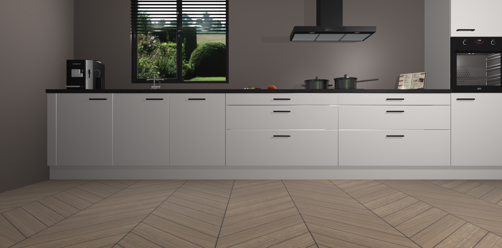 Een stijlvolle en praktische keuken als deze mag gezien worden. Dankzij de prachtige matte afwerking wordt de keuken gemakkelijk het middelpunt van uw huis - hij ziet er geweldig uit onder allerlei lichtomstandigheden, van dag tot nacht!
