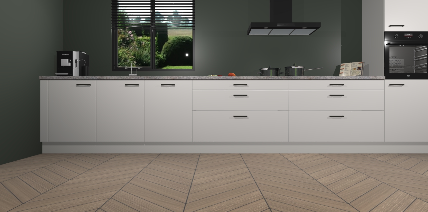Een stijlvolle en praktische keuken als deze mag gezien worden. Dankzij de prachtige matte afwerking wordt de keuken gemakkelijk het middelpunt van uw huis - hij ziet er geweldig uit onder allerlei lichtomstandigheden, van dag tot nacht!