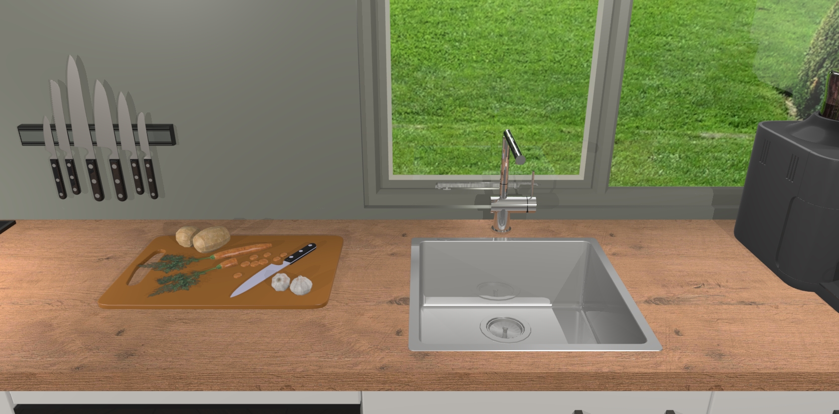 - De spoelbak is nog niet in gevreesd. Dit dient tijdens het werk gedaan te worden