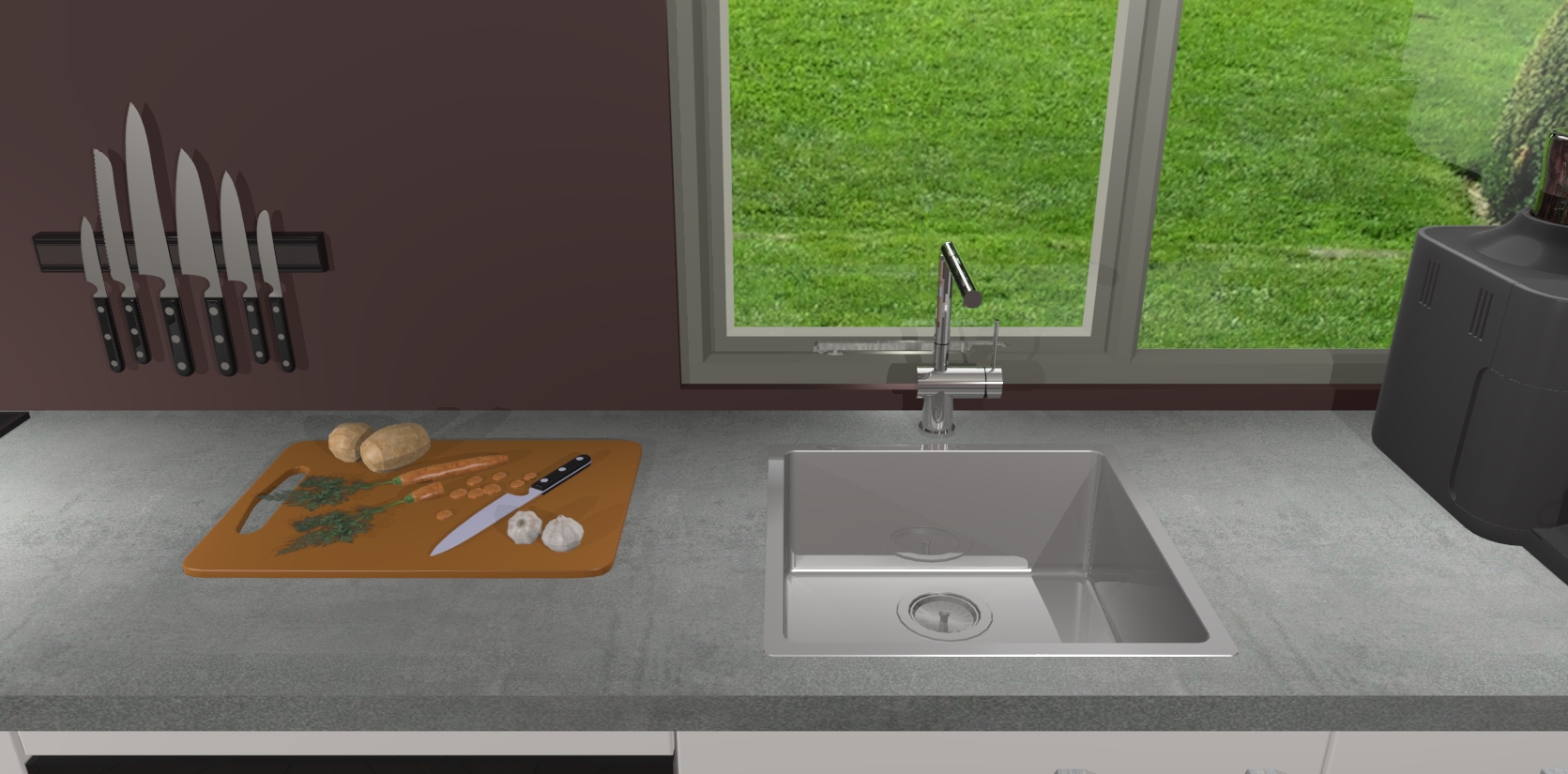 - De spoelbak is nog niet in gevreesd. Dit dient tijdens het werk gedaan te worden