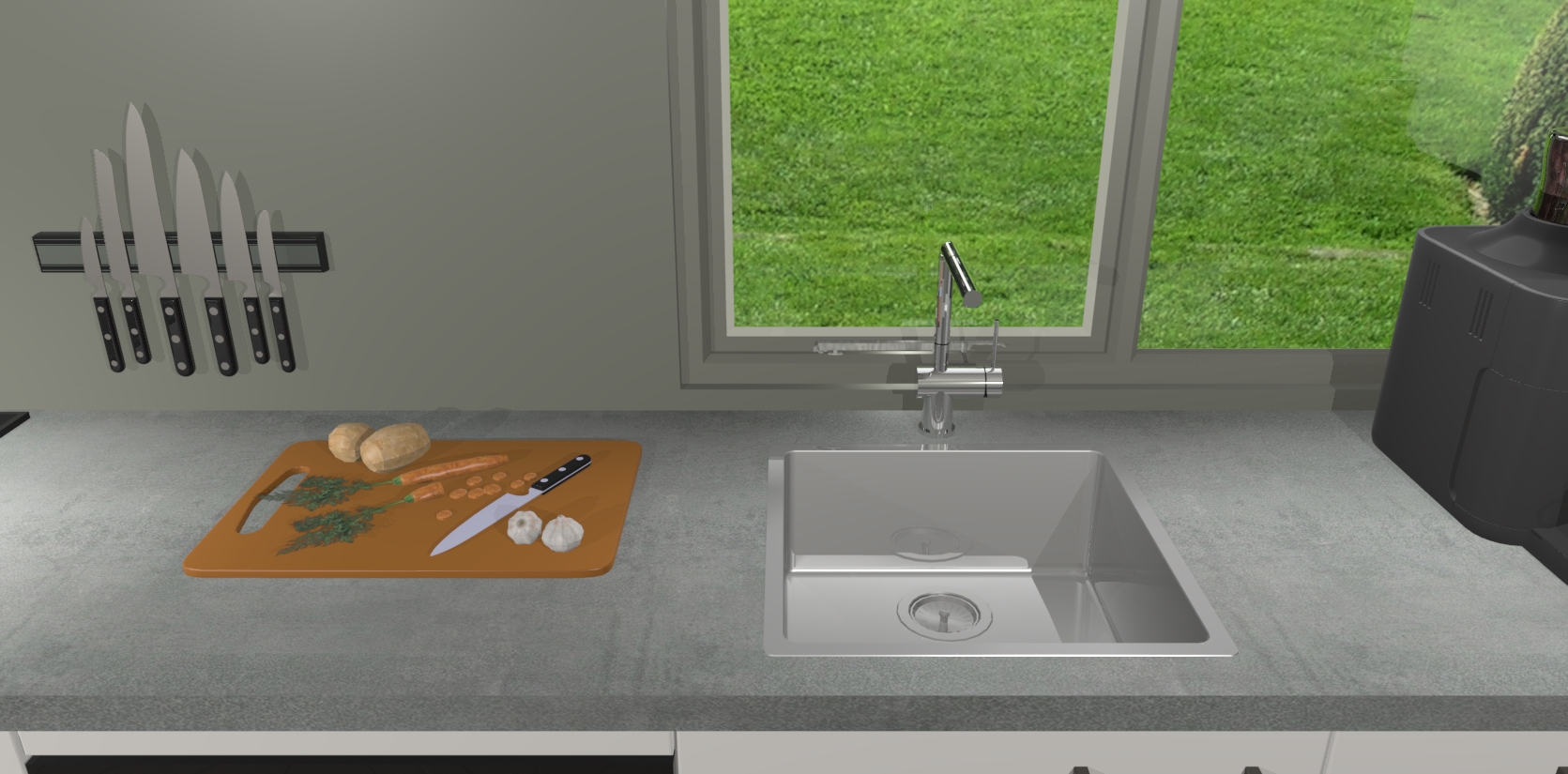 - De spoelbak is nog niet in gevreesd. Dit dient tijdens het werk gedaan te worden