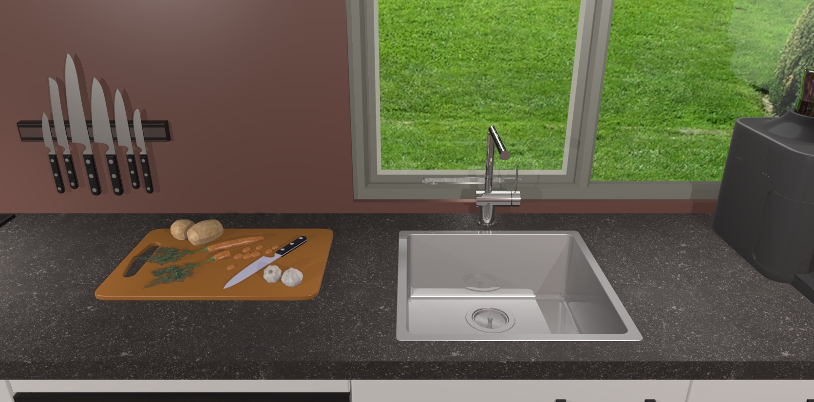 - De spoelbak is nog niet in gevreesd. Dit dient tijdens het werk gedaan te worden