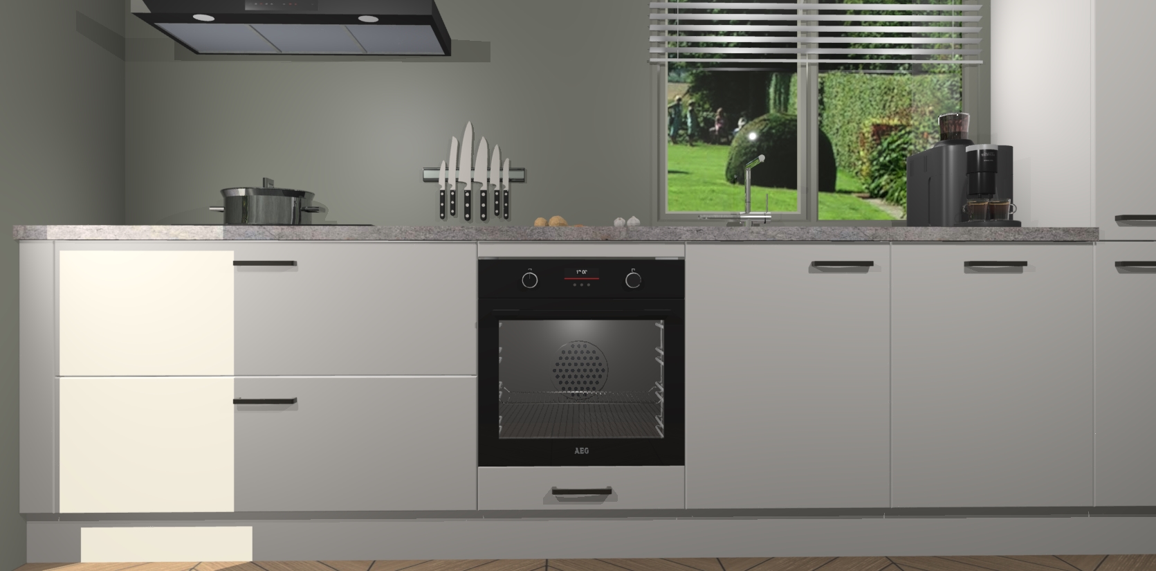- Ombouw om de oven onder het werkblad te kunnen monteren