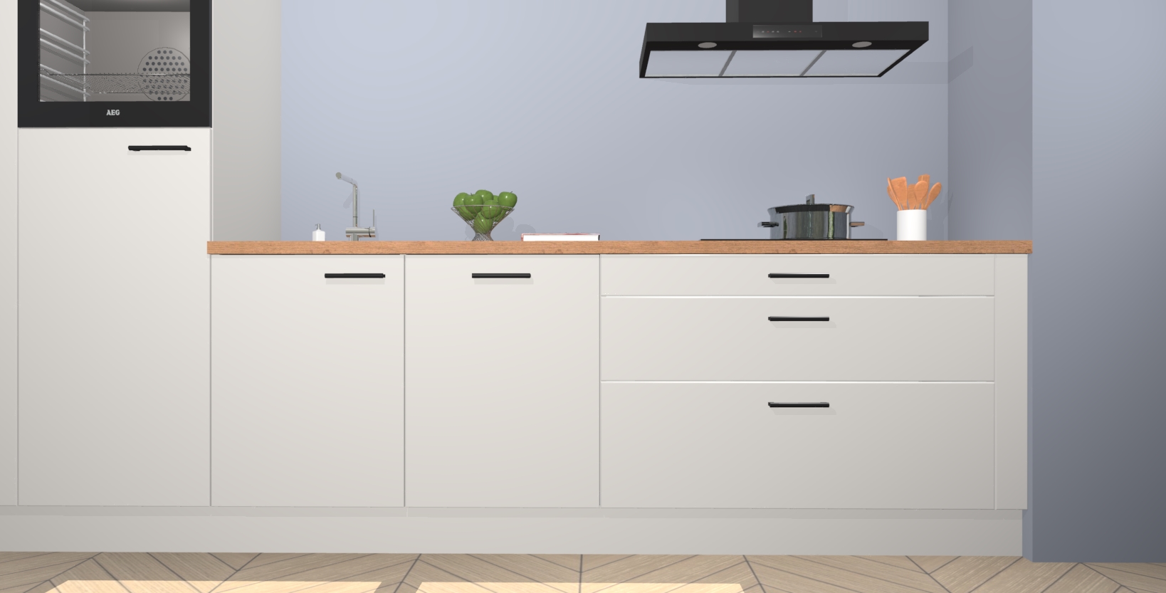 Inclusief plinten, stelpoten en werkblad