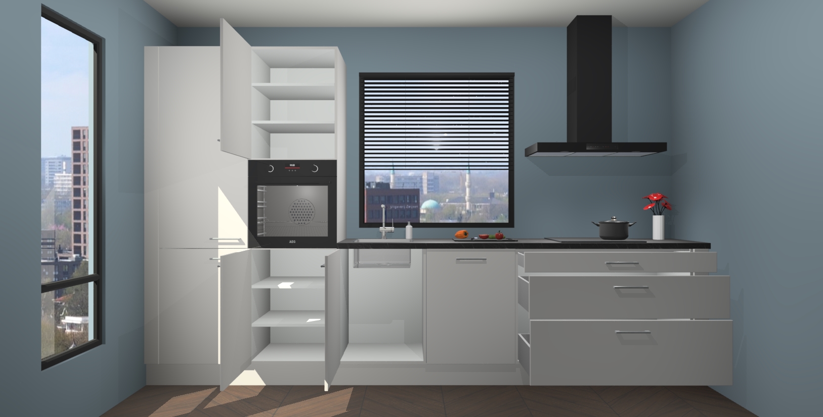 Dit is de perfecte keuken voor wie op zoek is naar een luxueuze stijl zonder zijn portemonnee te legen! Het chique ontwerp van de Zijdegrijze keuken Brussel voegt dat vleugje verfijning toe aan elk huis. Het gemak van voorgemonteerde kasten bespaart u talloze uren tijd en energie, zodat u veel sneller dan verwacht kunt beginnen te genieten van uw prachtige nieuwe keuken. Bovendien bedraagt de levertijd slechts 7 weken.